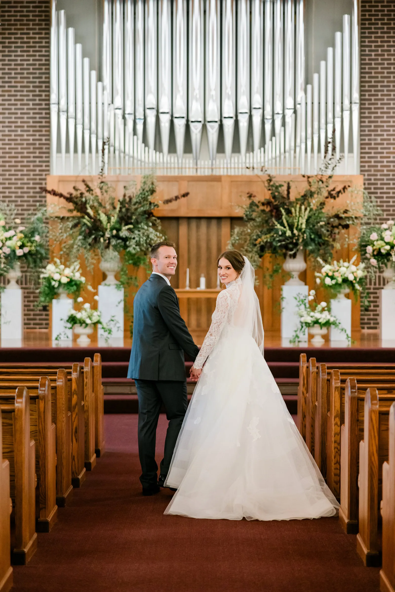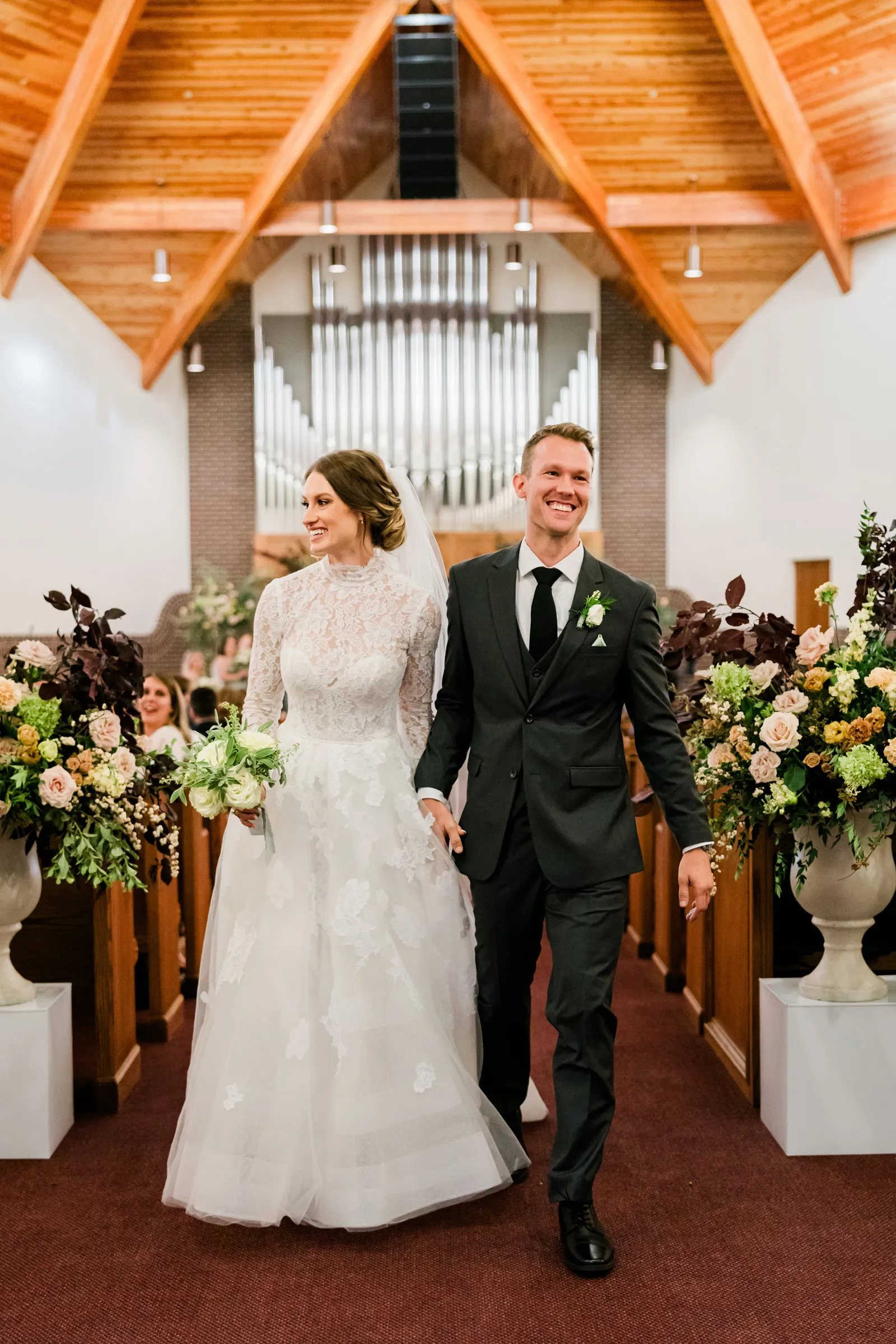 Walking down the aisle after being pronounced husband and wife! Jared and I drove to the reception location directly after the ceremony had ended, and we had a few moments of alone time before the celebration began. It was special to spend those few moments alone together and come to the realization that we had just become husband and wife! It was a feeling that cannot be recreated, but looking back on it makes me remember how special that feeling was.