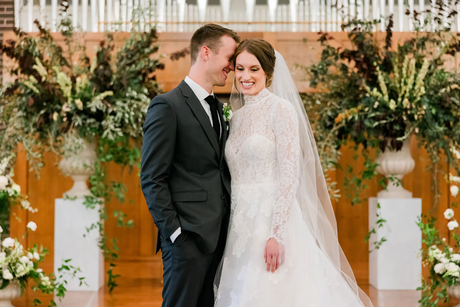 Wedding planning had its ups and downs. We made a lot of the larger decisions earlier on in the process, which made us feel like we weren’t accomplishing a lot in the couple of months leading up to the wedding. Thankfully, our florist/wedding coordinator (Dry Creek Blossoms/Erica Gravel) was so instrumental in keeping us on track. She assisted us so much in choosing decor rentals, overall design, and timeline details. Our parents were also very involved and helpful in the process. We are very thankful for all of the help and support we received through the planning process from our family, bridal party, and wonderful vendors. Our favorite time while planning the wedding was probably the week of the wedding. It really is a hectic week, but the excitement keeps you going, and the various appointments, ceremony rehearsal, and rehearsal dinner all add to the fun of the wedding week.