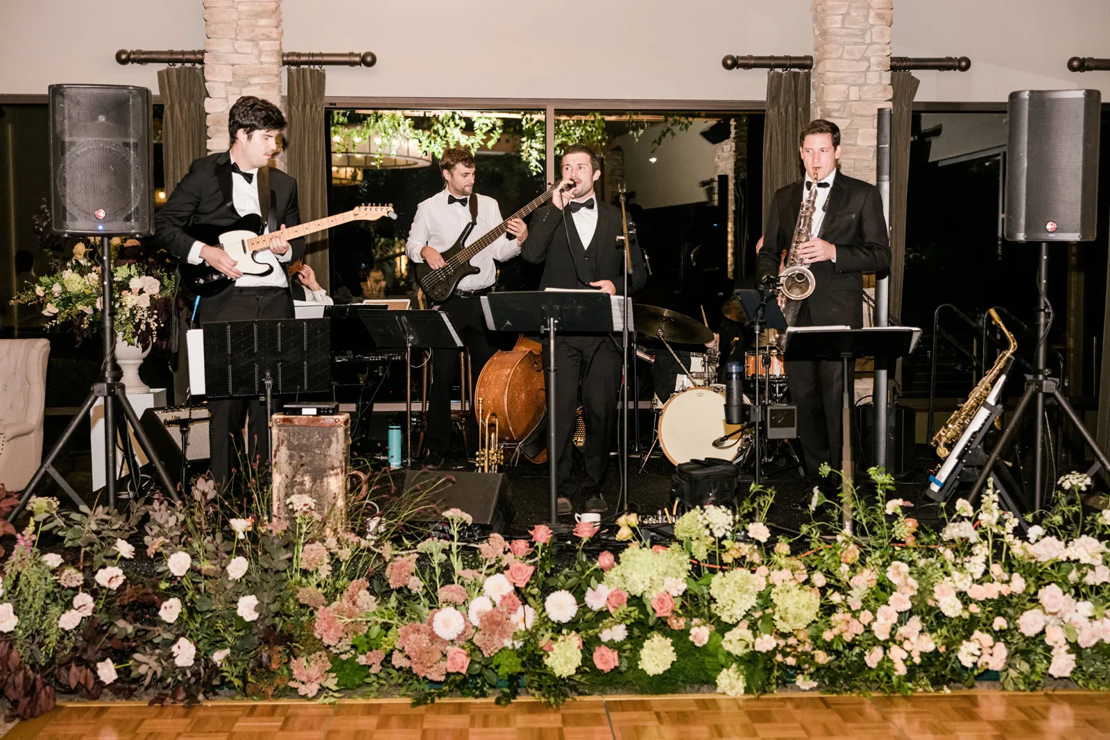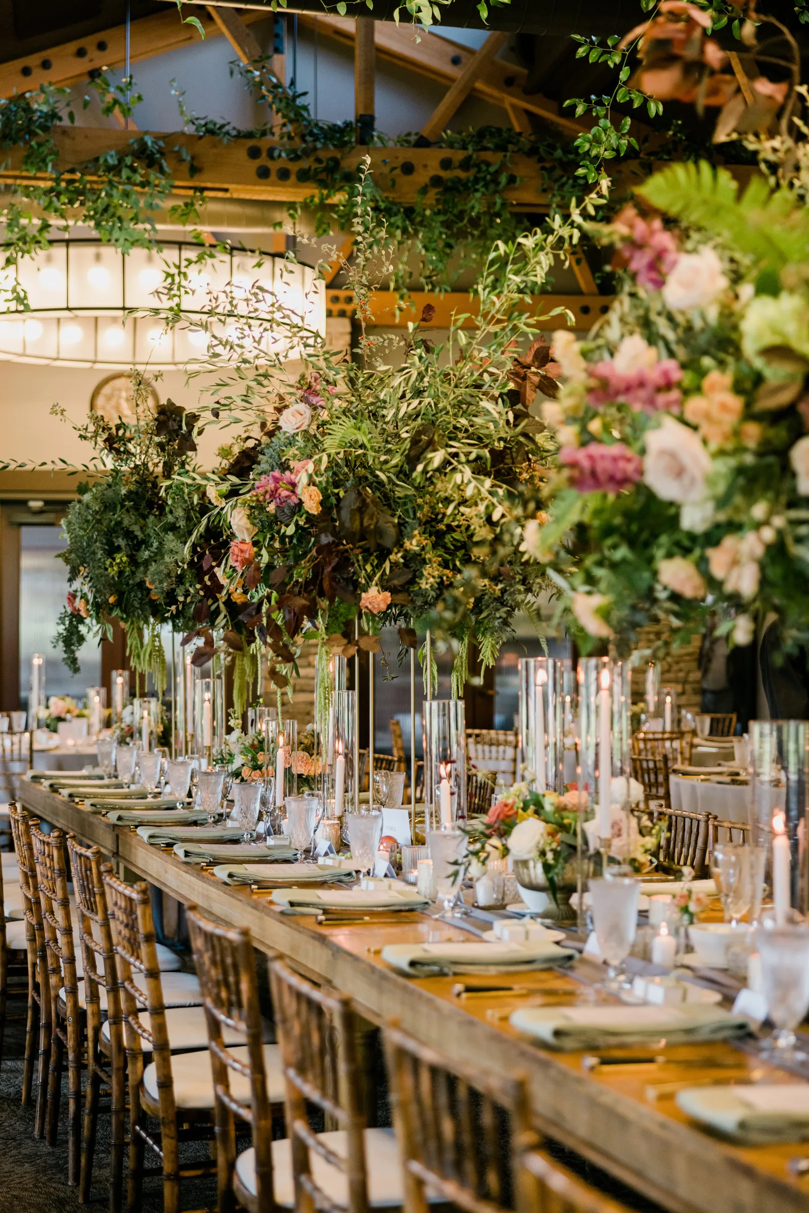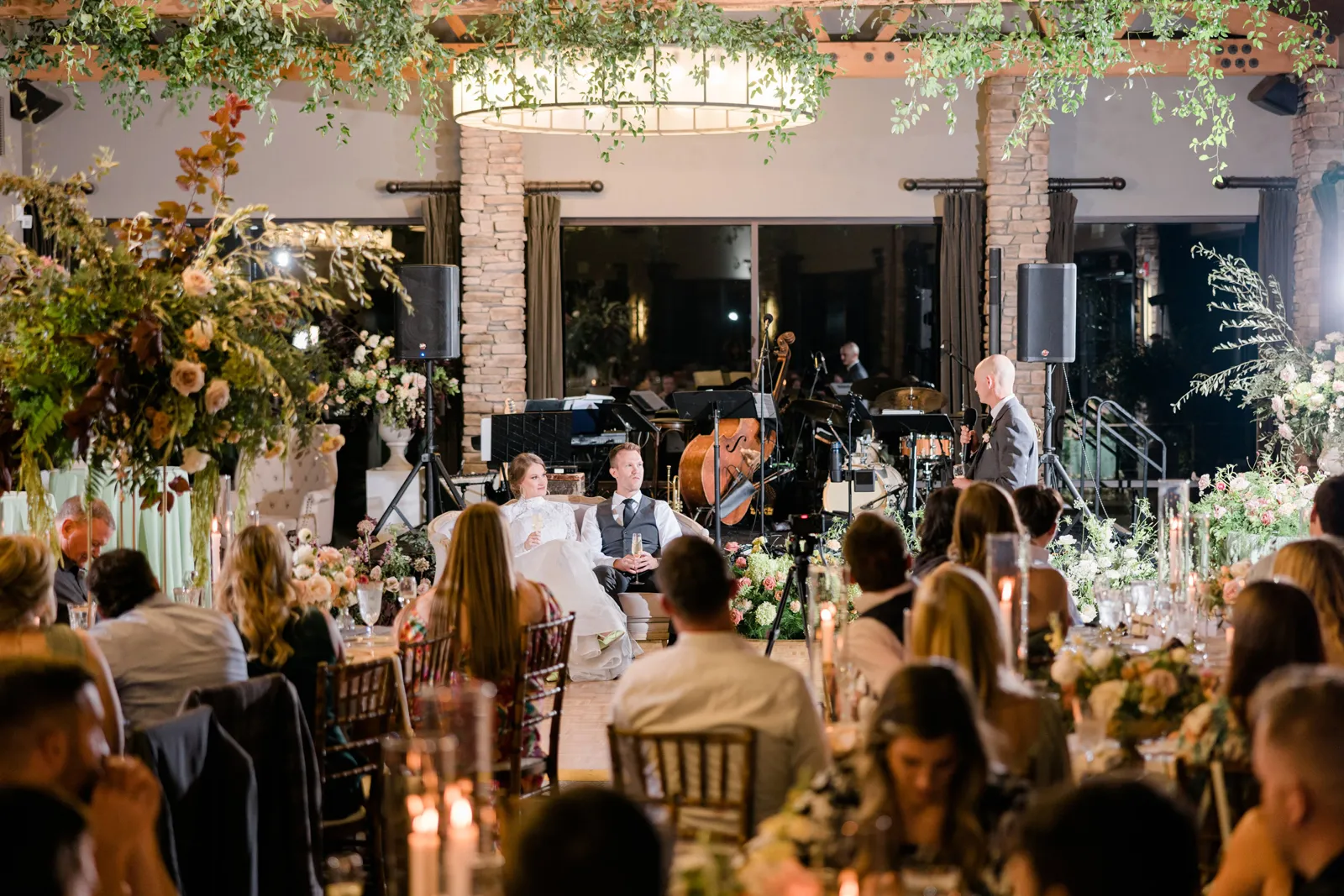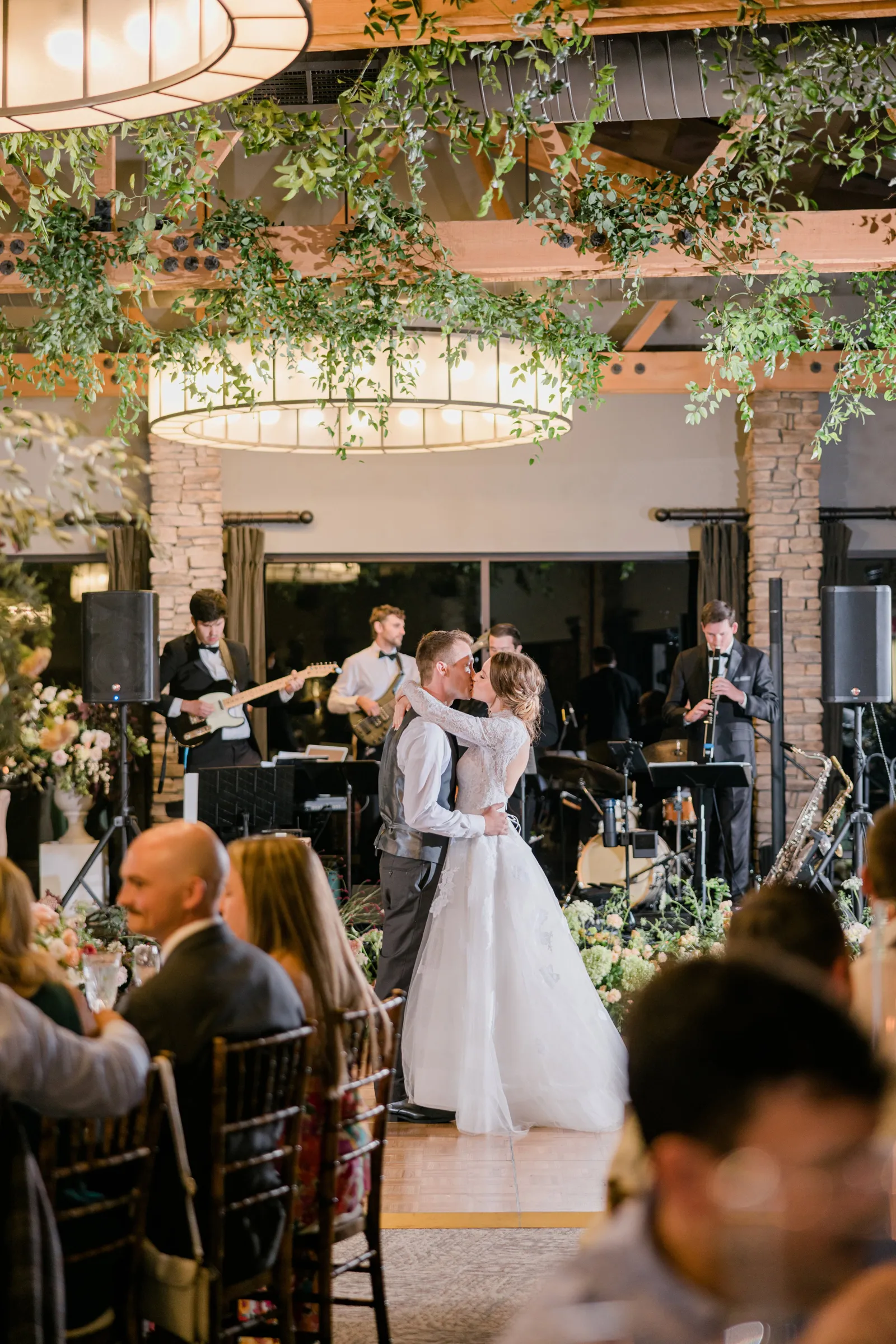 I think that our guests will remember the reception details the most. All of our vendors’ work came together beautifully to make it an enjoyable experience. The Spring Creek staff had excellent service and food. They were very organized and were timely serving all our guests. Dry Creek Blossoms decorated the reception area beautifully with raised table centerpieces, candles, and smilax greenery hanging from the ceiling beams, plus much more. Garuda Blue played background jazz music during dinner completed the full experience.