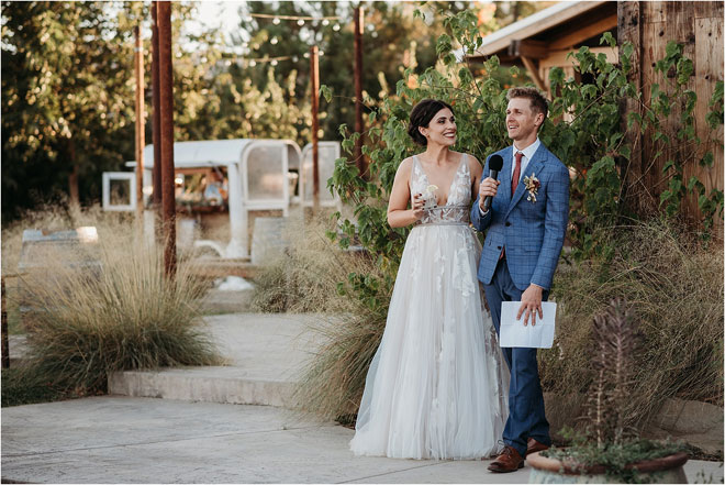 After the ceremony, the couple spent 10 minutes alone together, which was something their officiant insisted they do before the vows, as well. “It was such a centering and grounding thing,” says Steph. “With all of the chaos of the day and stress leading up to it, it was wonderful just to be together and focus on one another.”