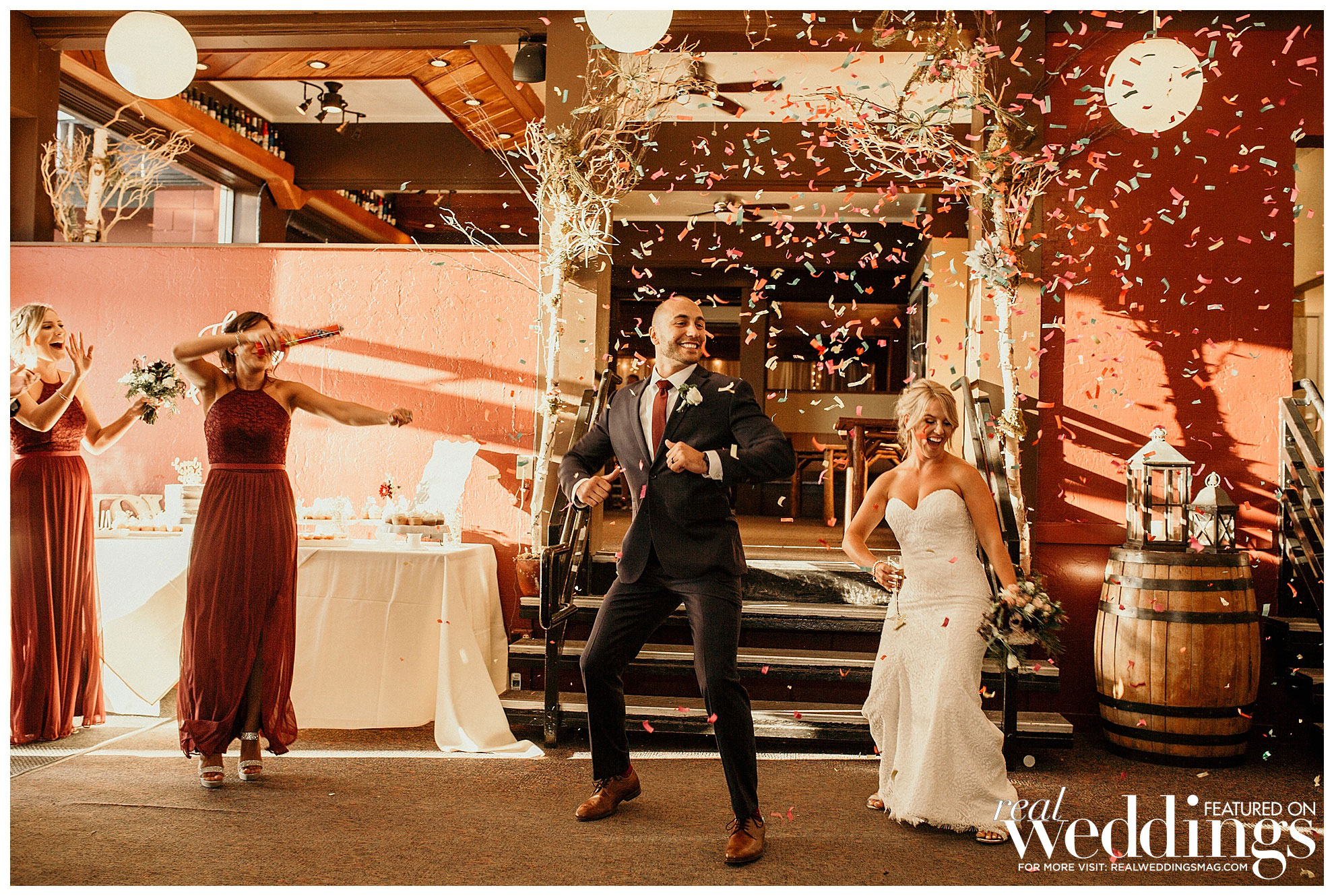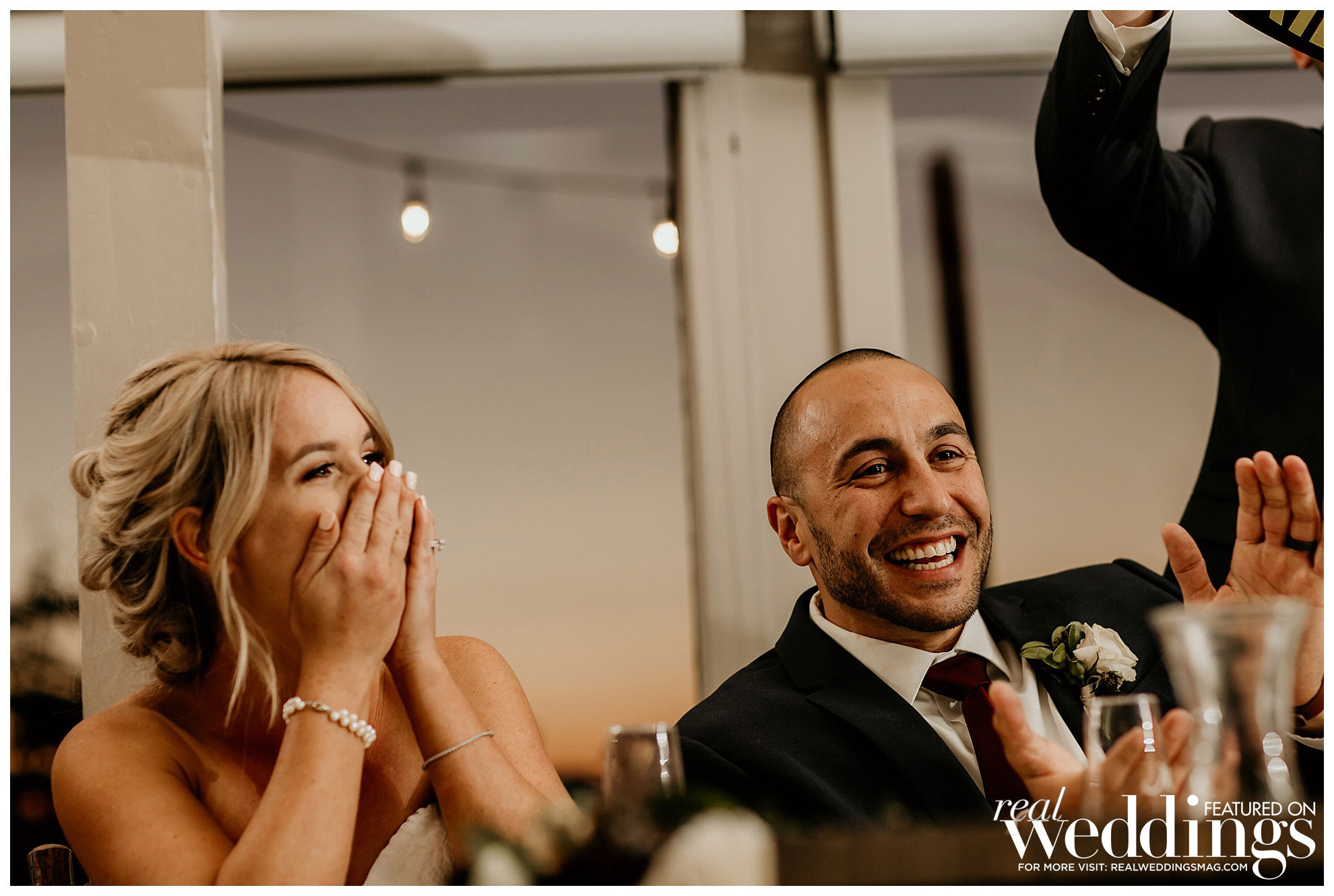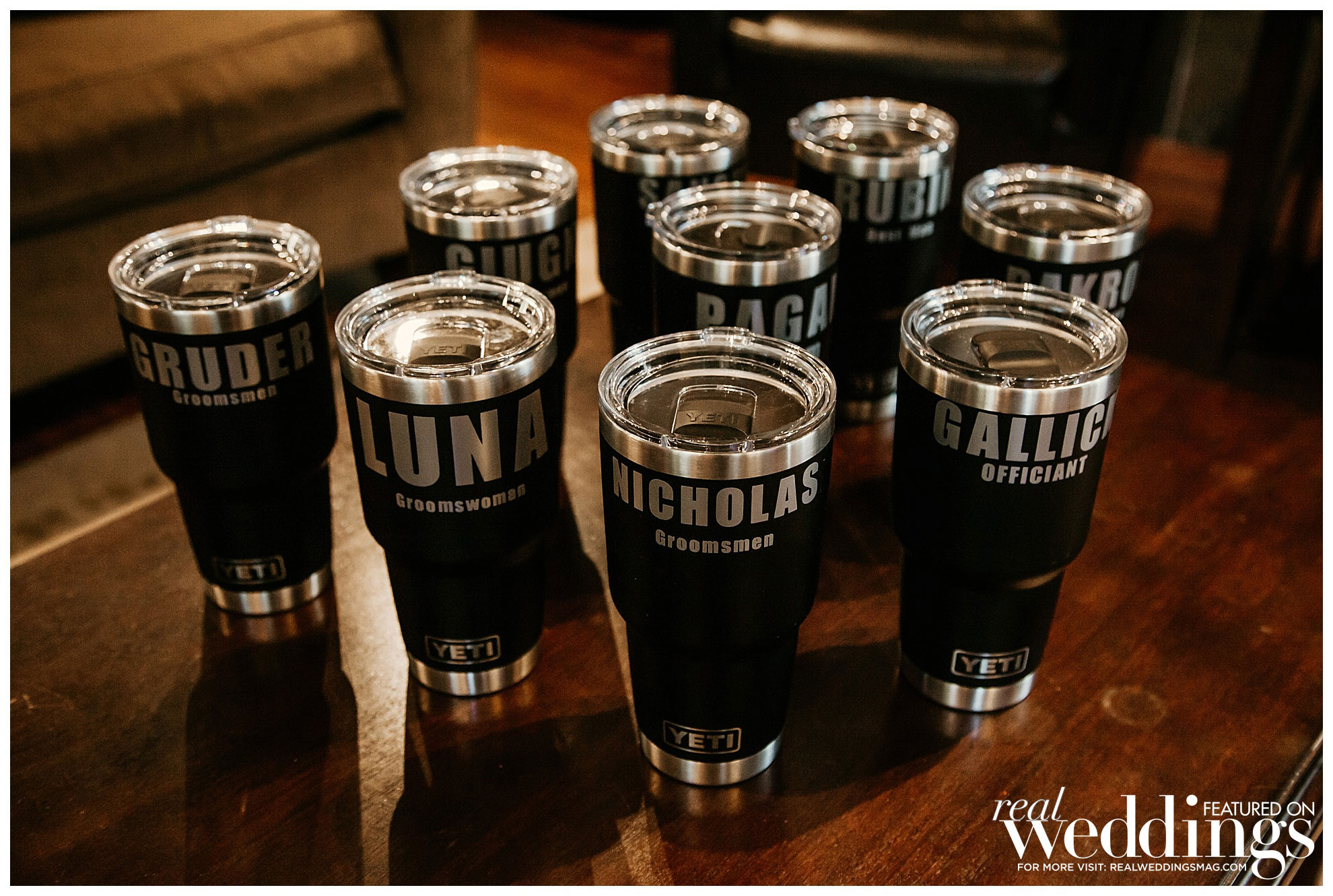 Stephanie and Matt are thankful for second chances. They first met when Matt and a friend visited the bar where Stephanie worked. “They decided to try scotch for the first time at 11 a.m. on a Wednesday, and I made fun of them,” she says. Flash forward a couple years and their paths crossed again at a Spartan Race. “We exchanged numbers, but he was dating someone else so we remained friends for a few weeks. He broke things off and asked to take me on a date,” she says.