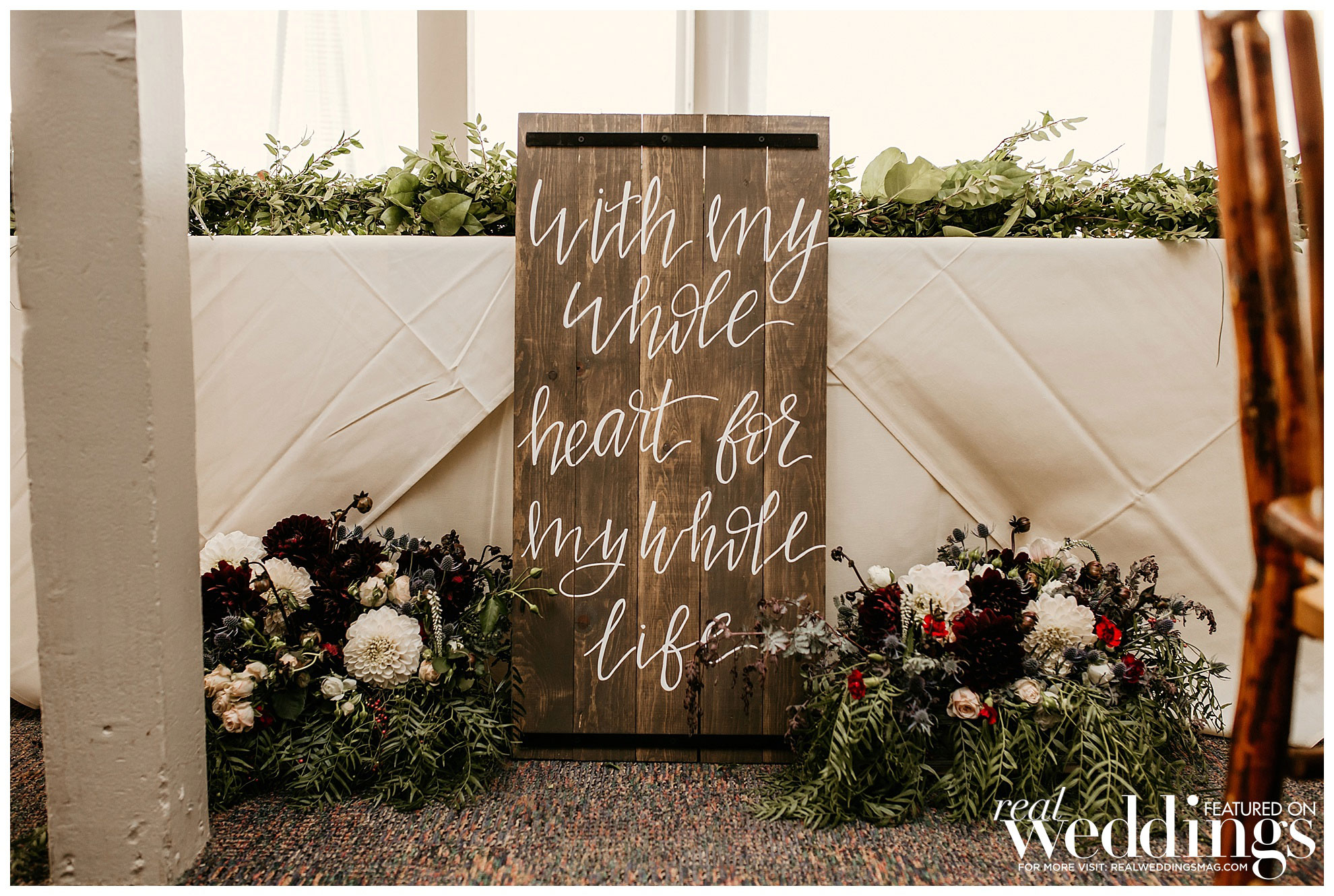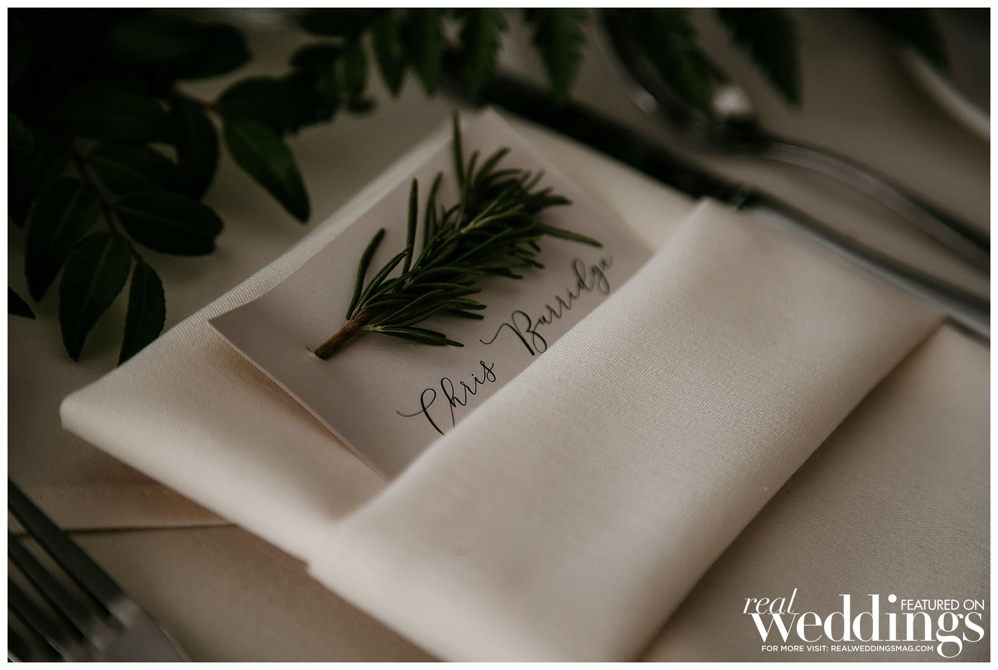 Her vision was to keep things natural and simple, and she relied on the floral designer to help bring it to life. “She made the most beautiful greenery garlands for the table and it made me so happy,” she says. “She added little touches of other small flowers throughout. I didn’t ask for it but she knew exactly what I needed.”
