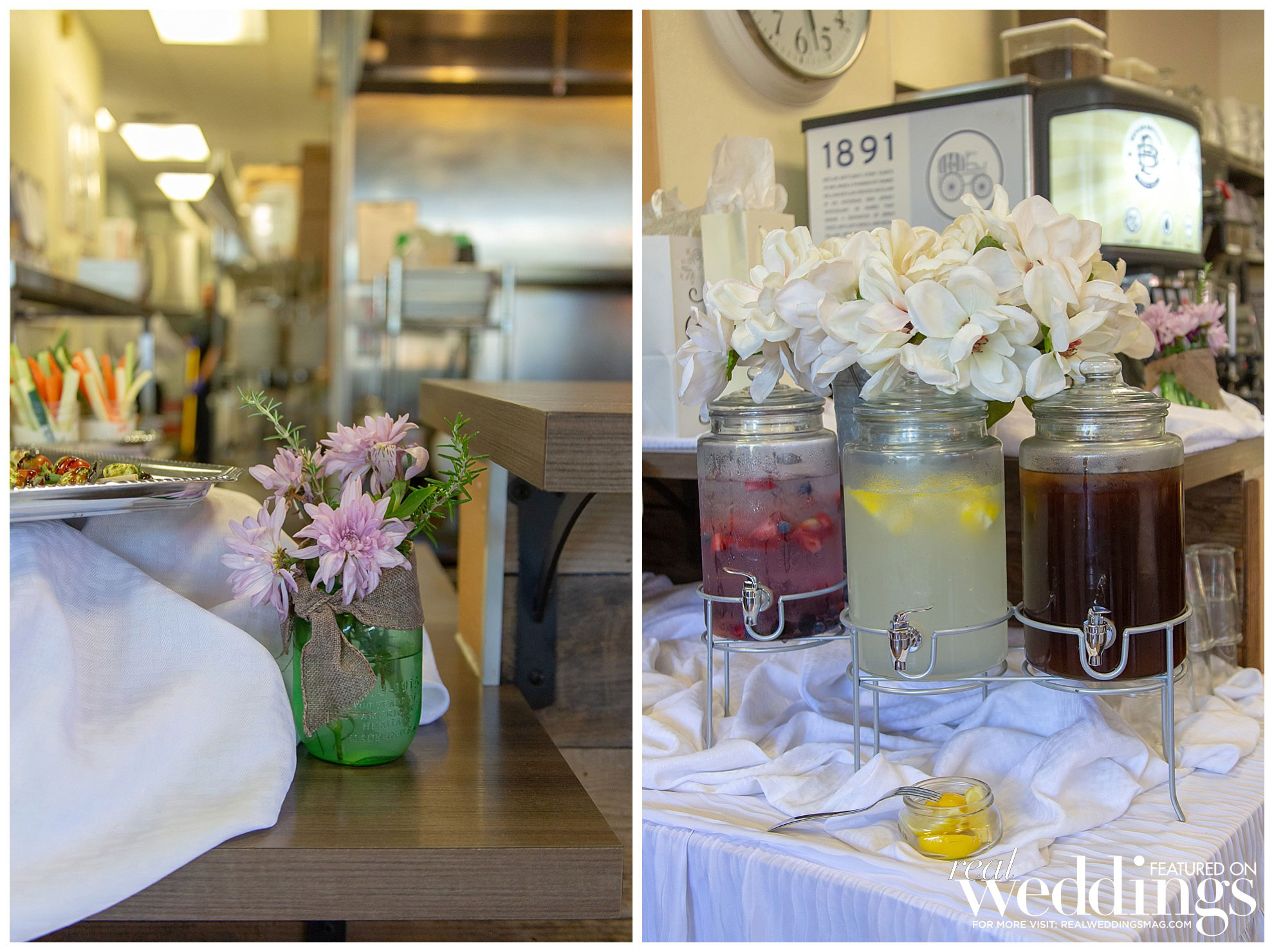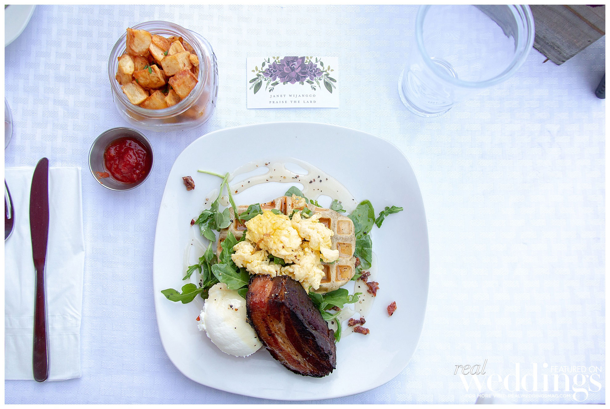 The kept the ceremony cozy and small at Gold Hill Gardens, and were fortunate enough to use all the flowers and décor from a wedding the day before. The celebration then moved to the waffle restaurant; a location Paul says they choose because they wanted to create a low-key and fun atmosphere. “We wanted something that felt uniquely us—not too stuffy or formal,” he says. They opted to have guests choose one of two options off the standard menu, paired with a handful of sides. But the real treat was dessert. They decided against having a cake (“We skipped cake—it just wasn’t us,” says Paul) and instead treated their guests to a build-your-own-waffle bar. Guests selected mini waffles decked out with everything from apple compote to salted espresso caramel to candied walnuts and chocolate sauce.