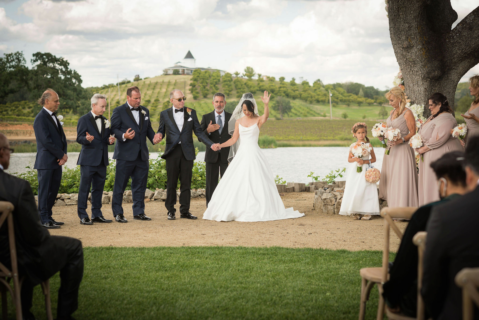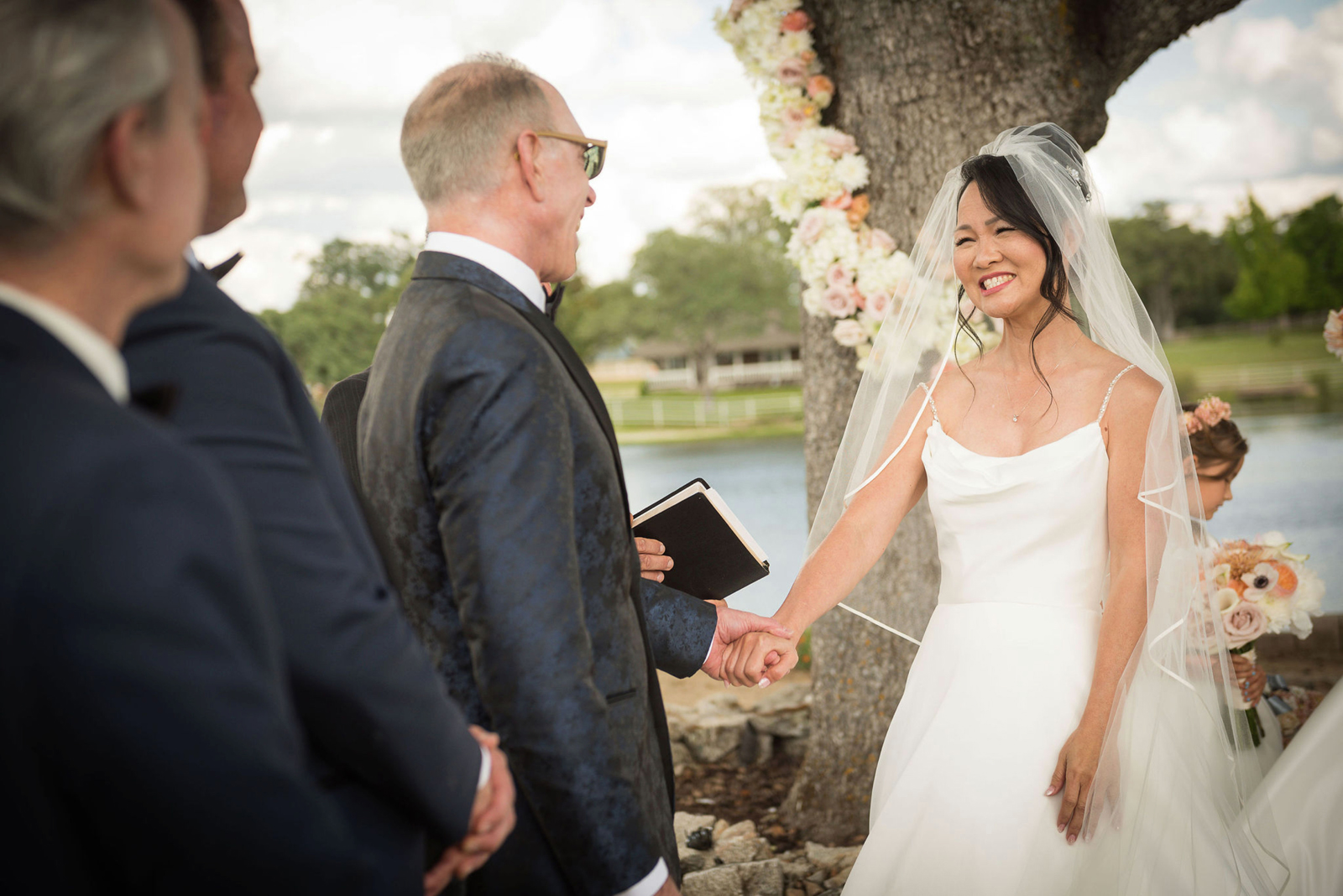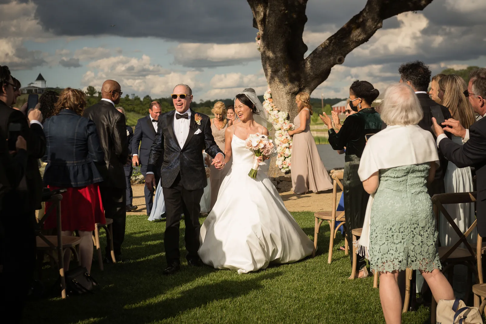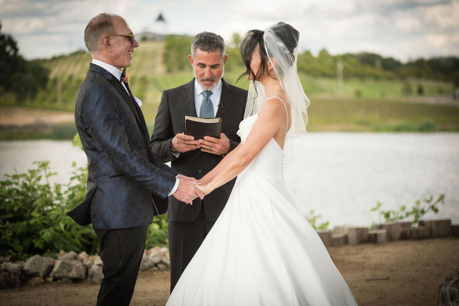 The ceremony was on a peninsula surrounded by a 9-acre lake, so there was no issue there. The reception was in a barn with three walls opened. We had hand sanitizer and masks for whomever felt that they needed it. Other than that, we celebrated without any hindrances or barriers.