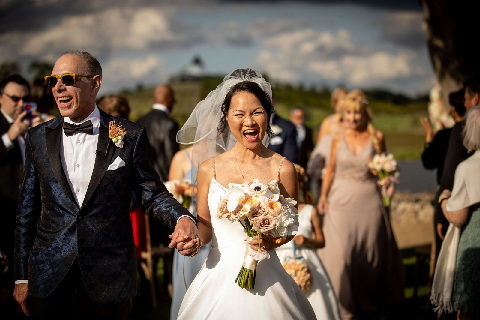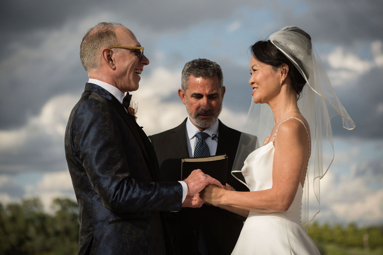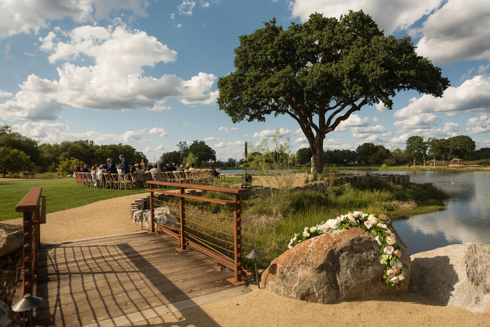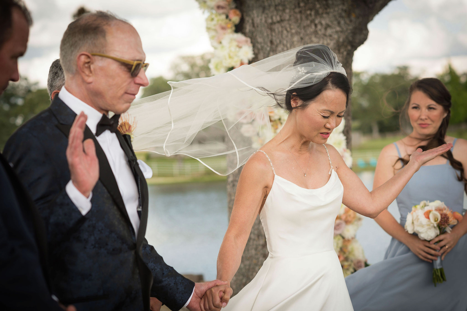 The ceremony was on a peninsula surrounded by a 9-acre lake, so there was no issue there. The reception was in a barn with three walls opened. We had hand sanitizer and masks for whomever felt that they needed it. Other than that, we celebrated without any hindrances or barriers.