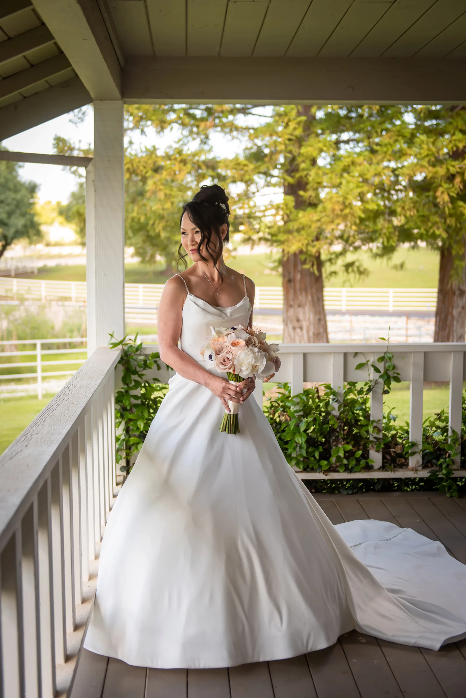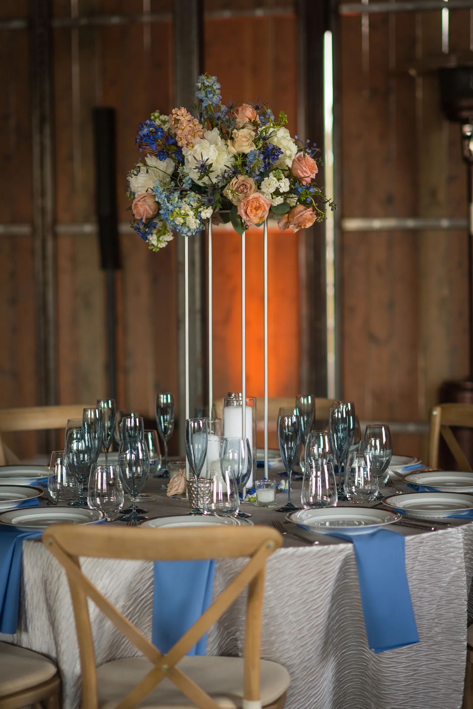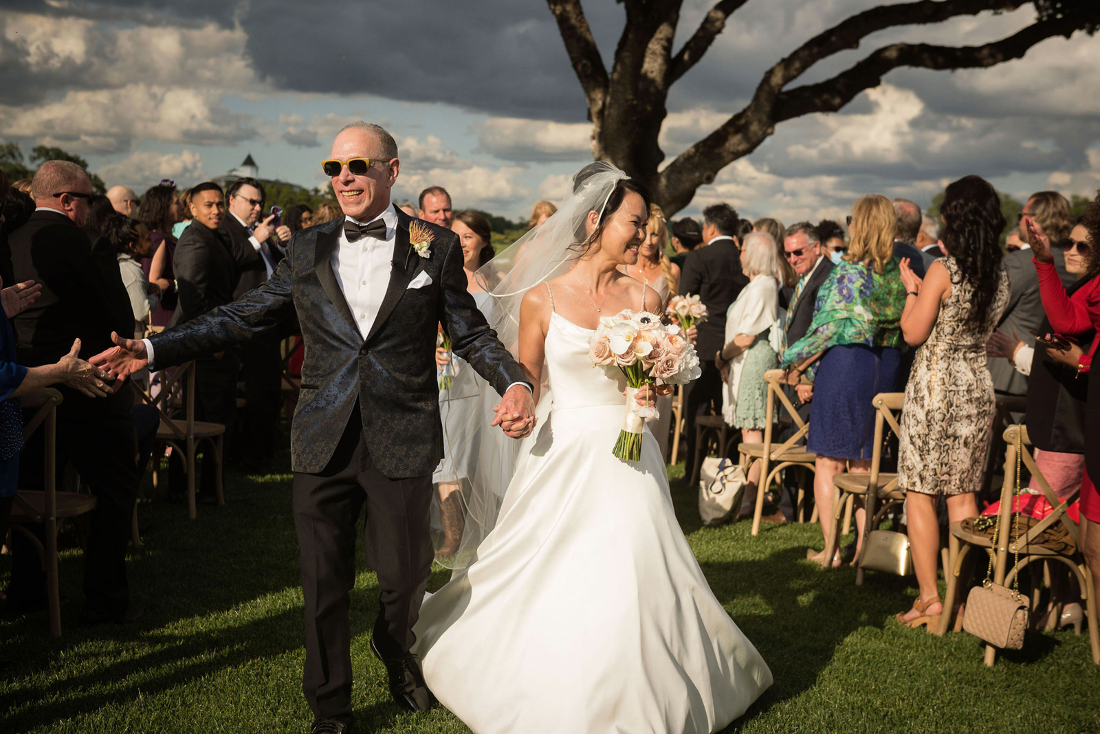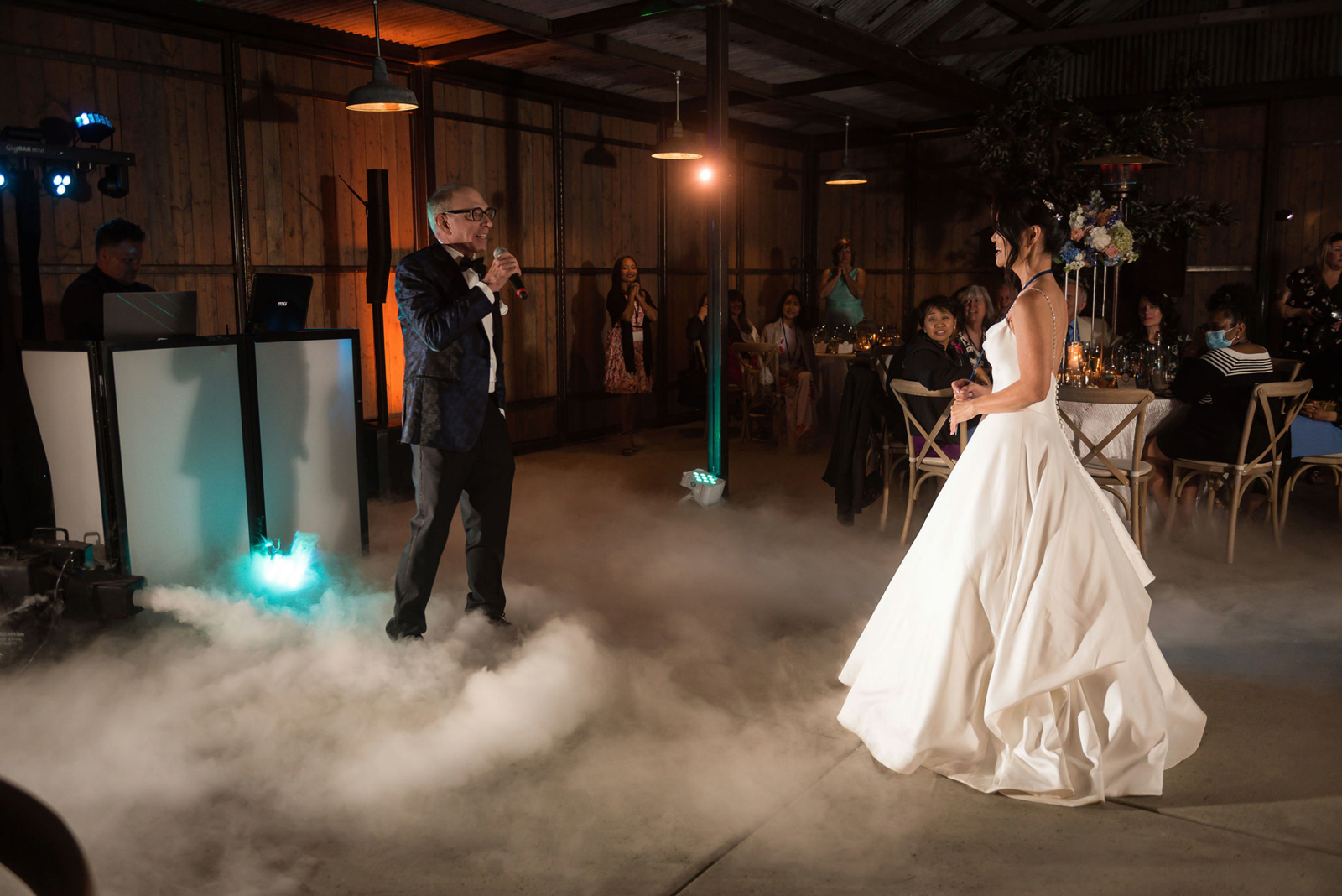 The ceremony was on a peninsula surrounded by a 9-acre lake, so there was no issue there. The reception was in a barn with three walls opened. We had hand sanitizer and masks for whomever felt that they needed it. Other than that, we celebrated without any hindrances or barriers.