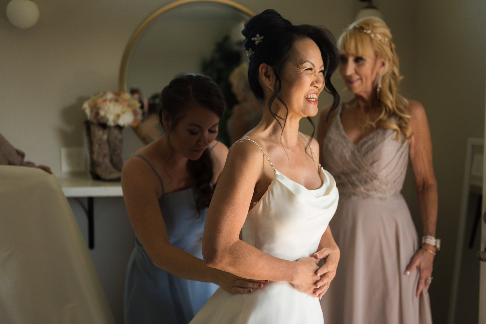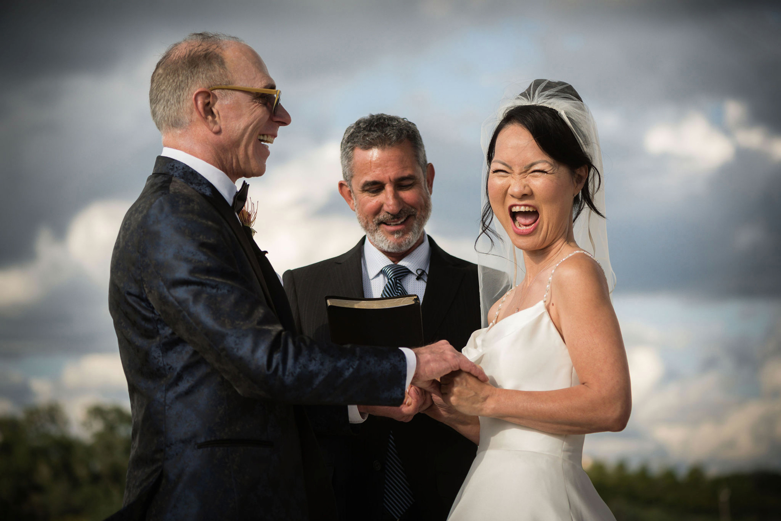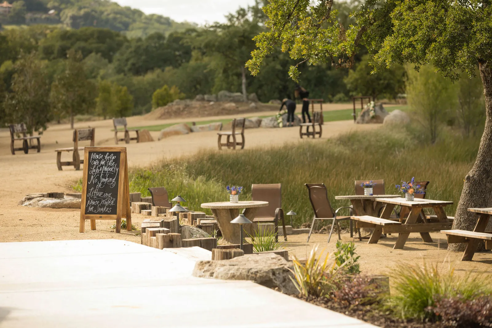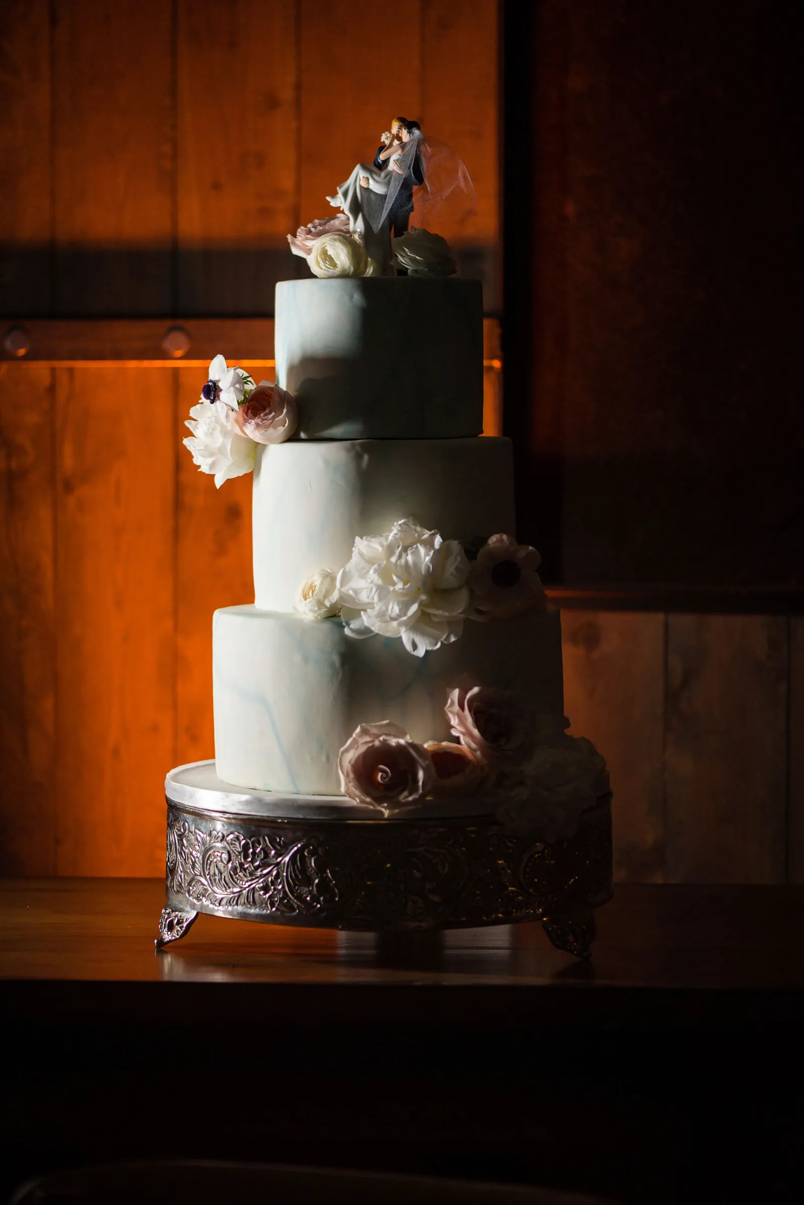The ceremony was on a peninsula surrounded by a 9-acre lake, so there was no issue there. The reception was in a barn with three walls opened. We had hand sanitizer and masks for whomever felt that they needed it. Other than that, we celebrated without any hindrances or barriers.