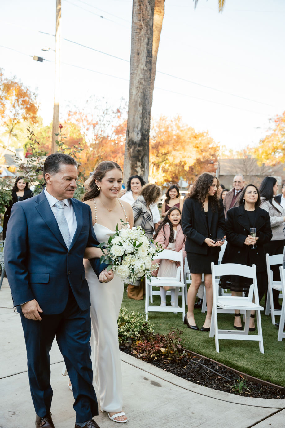 I had always wanted Chick-fil-A at my wedding, but there isnât one in Chico. My uncle was able to bring catering trays to the cocktail hour prior to the weddingâI was thrilled! Giovanni and I were able to arrive to the ceremony in the 1931 Ford that his father restored. The planning took all of two months and was relatively easy, as Giovanniâs mom was very helpful with providing vendors for all our needs.