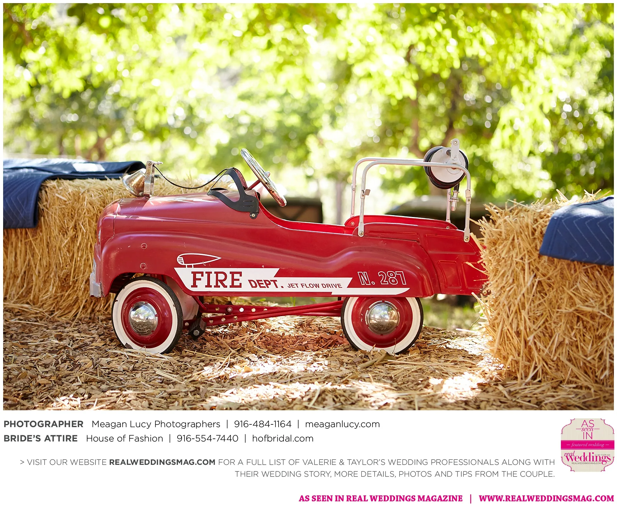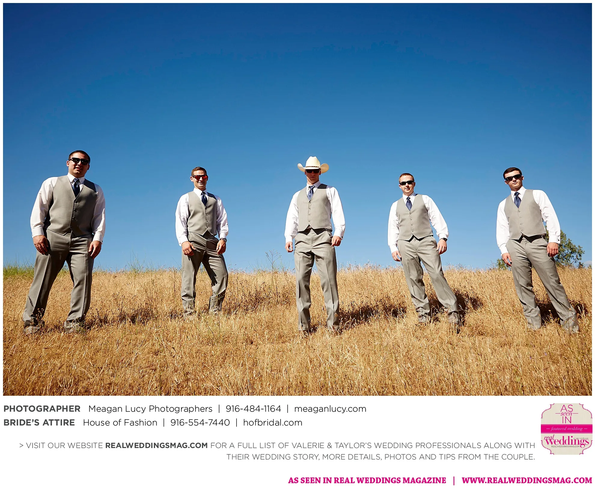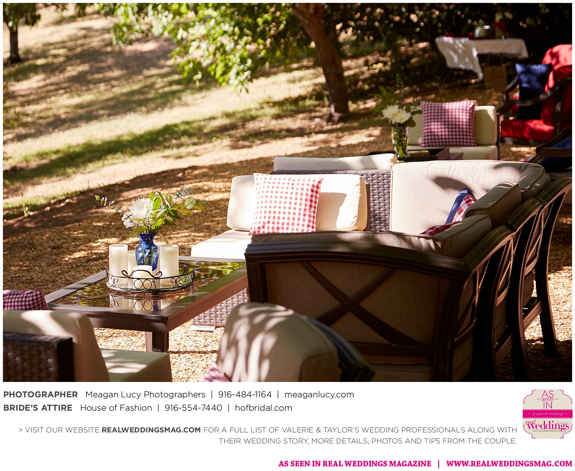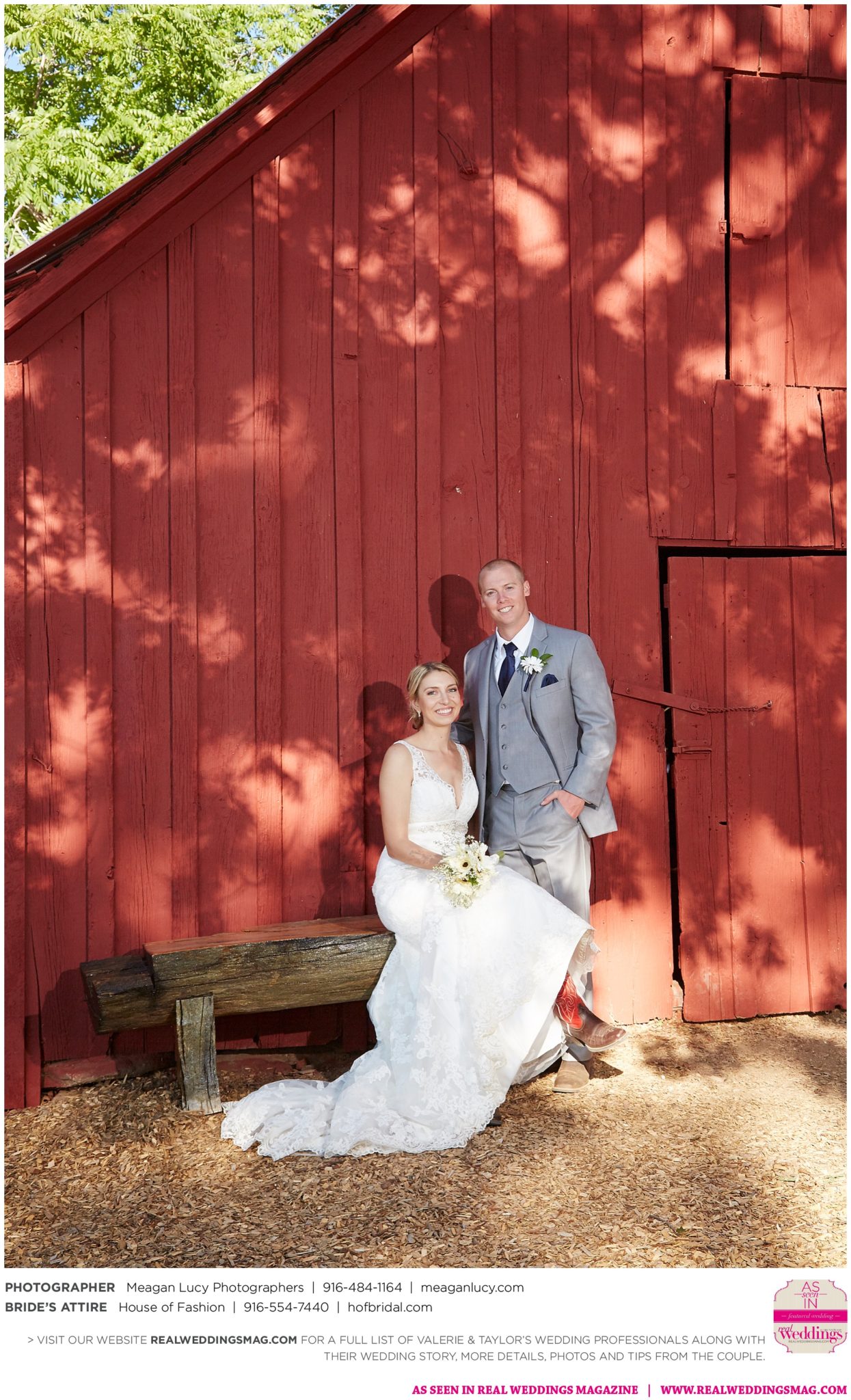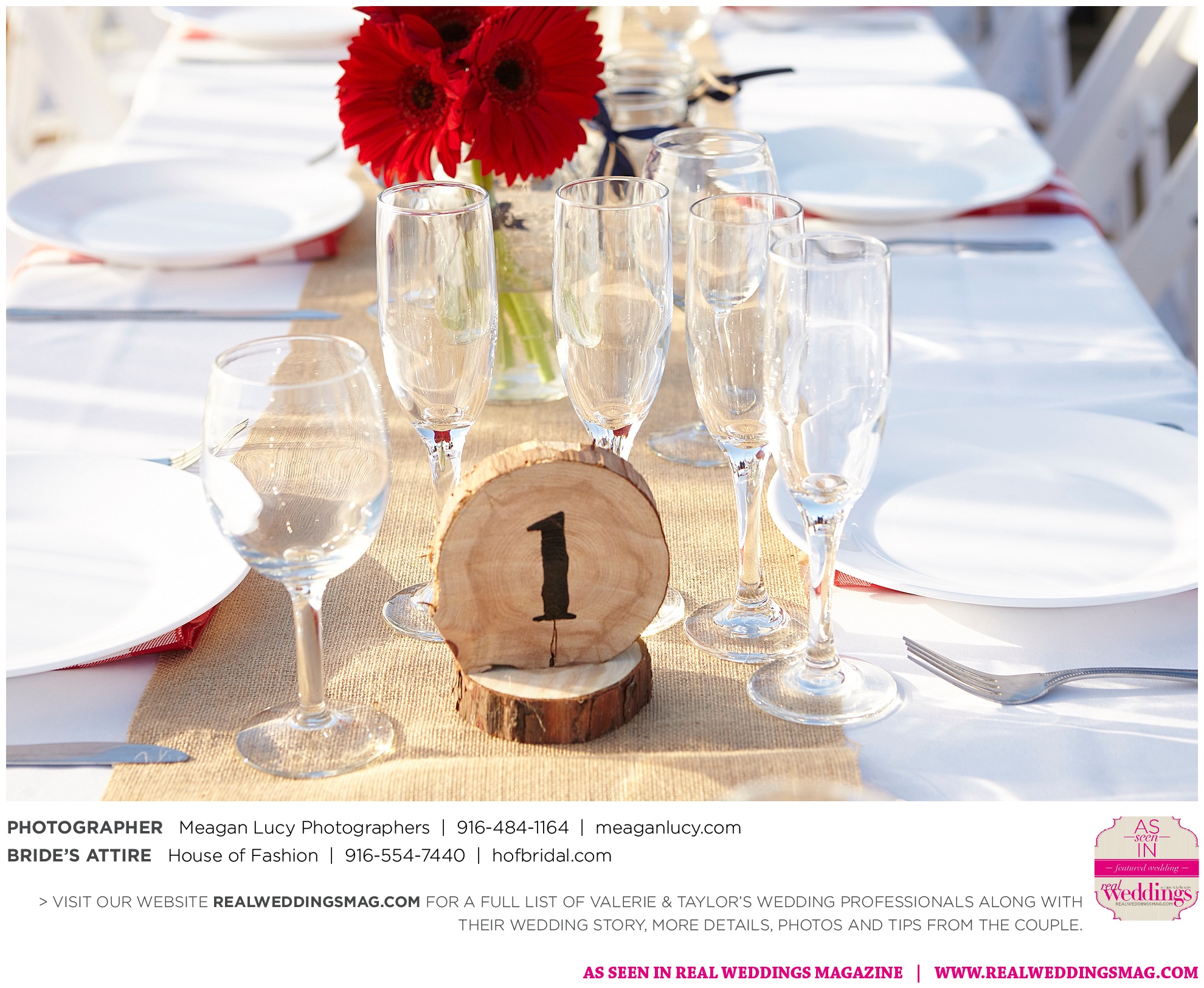 For their American country-themed wedding, they chose red, white and blue as their colors. Completing the country look, the groom wore cowboy boots to the ceremony and his white cowboy hat for the reception.