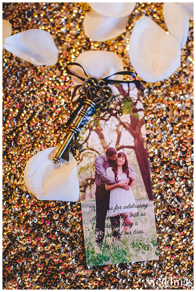 We had key bottle openers that were attached to personalized bookmarks thanking our guests.