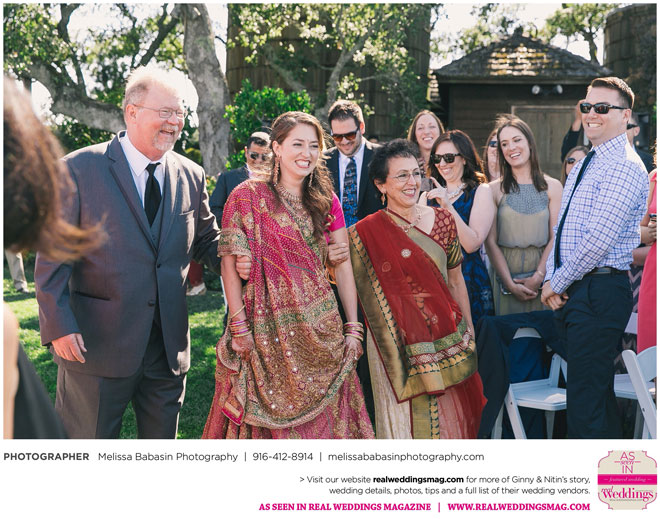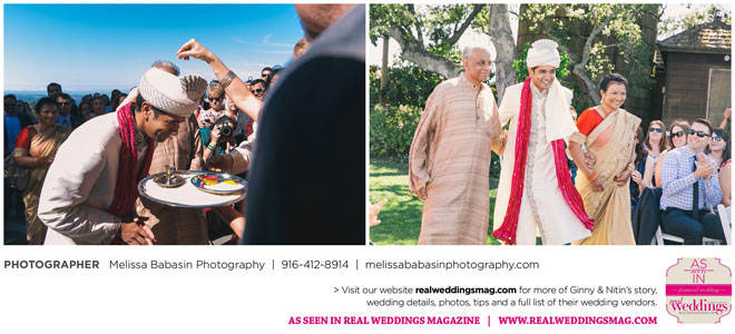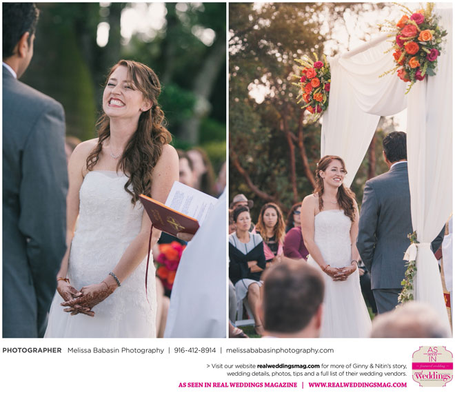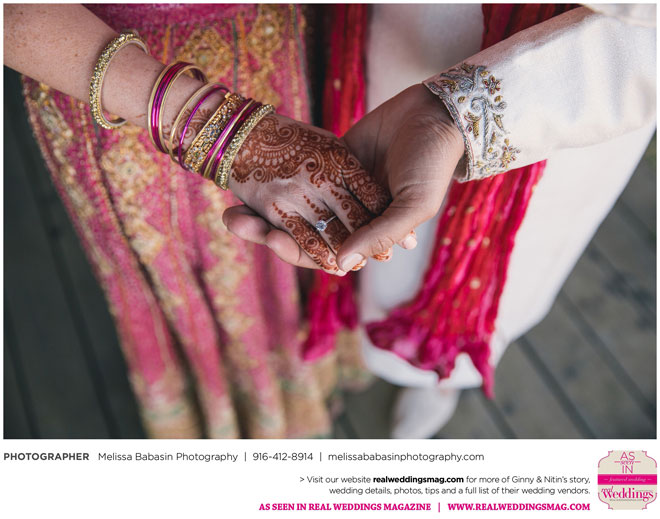 On the big day, the ceremonies were split into three parts: One short Hindu ceremony, a small Hindu reception, and a Christian ceremony followed by a traditional large reception. As a part of the initial 45-minute Hindu ceremony, Nitin rode on horseback to the ceremony site while his family danced and sang around him in a baraat—a giant procession of the groom’s family complete with music, dancing and a whole lot of celebration. Ginny’s face ached from smiling as he rode up on that white horse to take their vows.