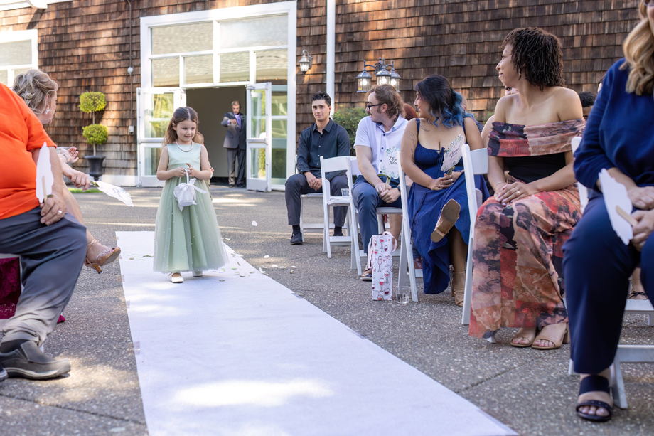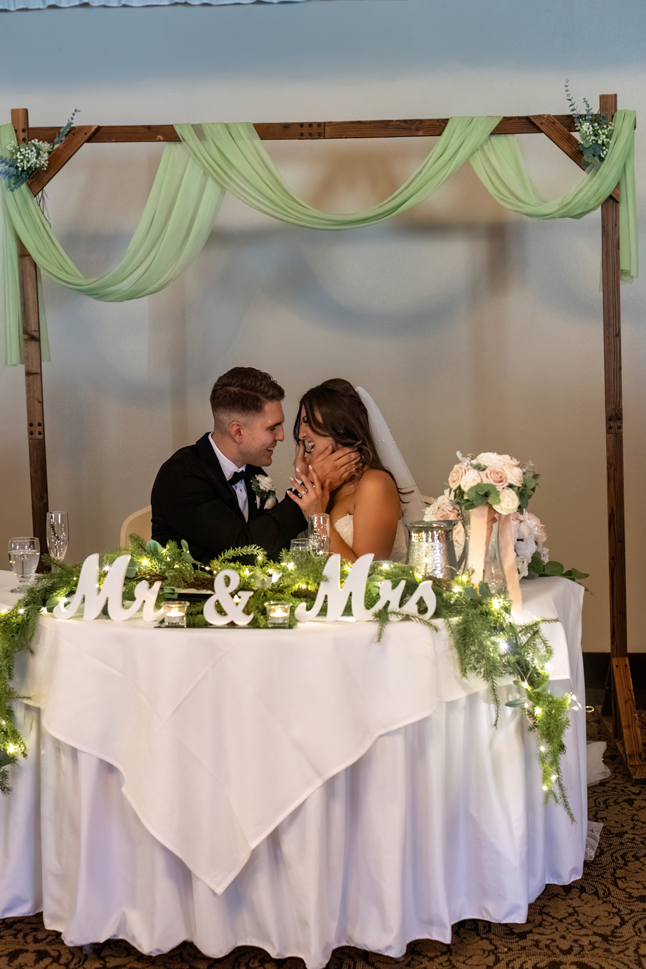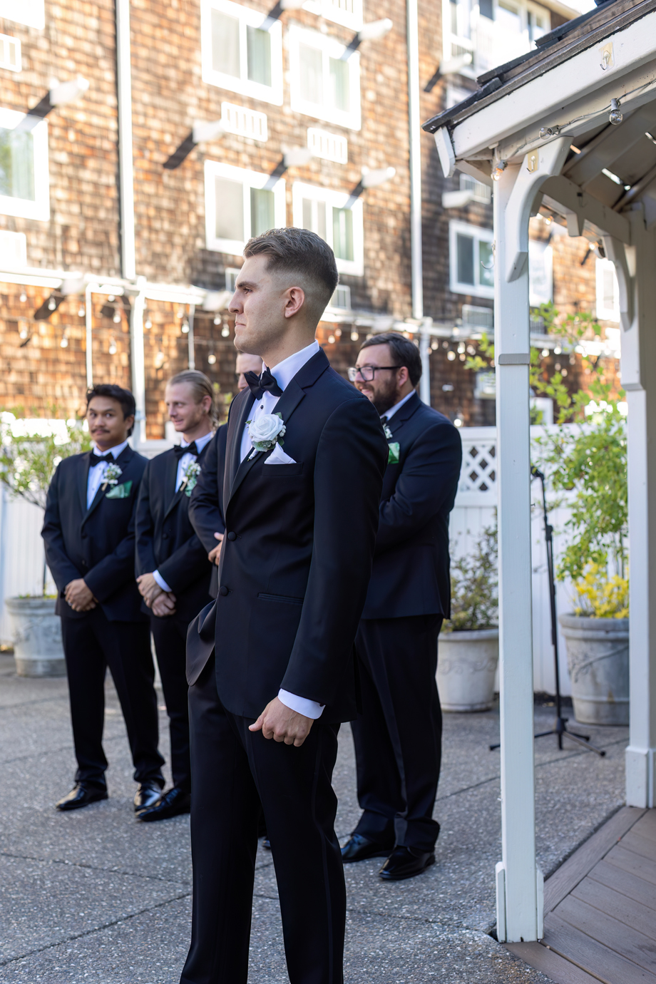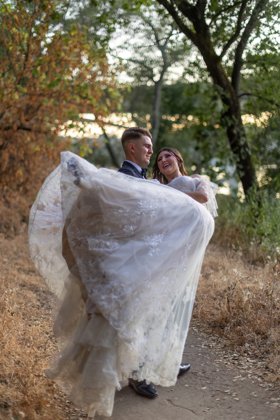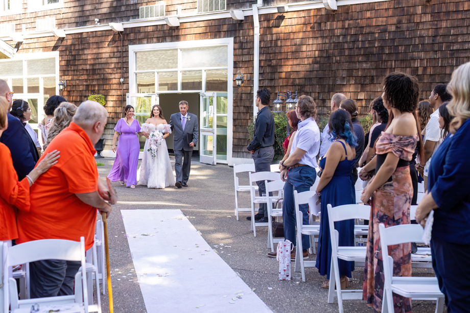 My dad (Russ Stringfellow) was our officiant. Having someone so close to both of us made the moment so special. The ceremony was outside underneath the gazebo with the lights in the back, and the gorgeous greenery that Lake Natoma Inn has to offer.