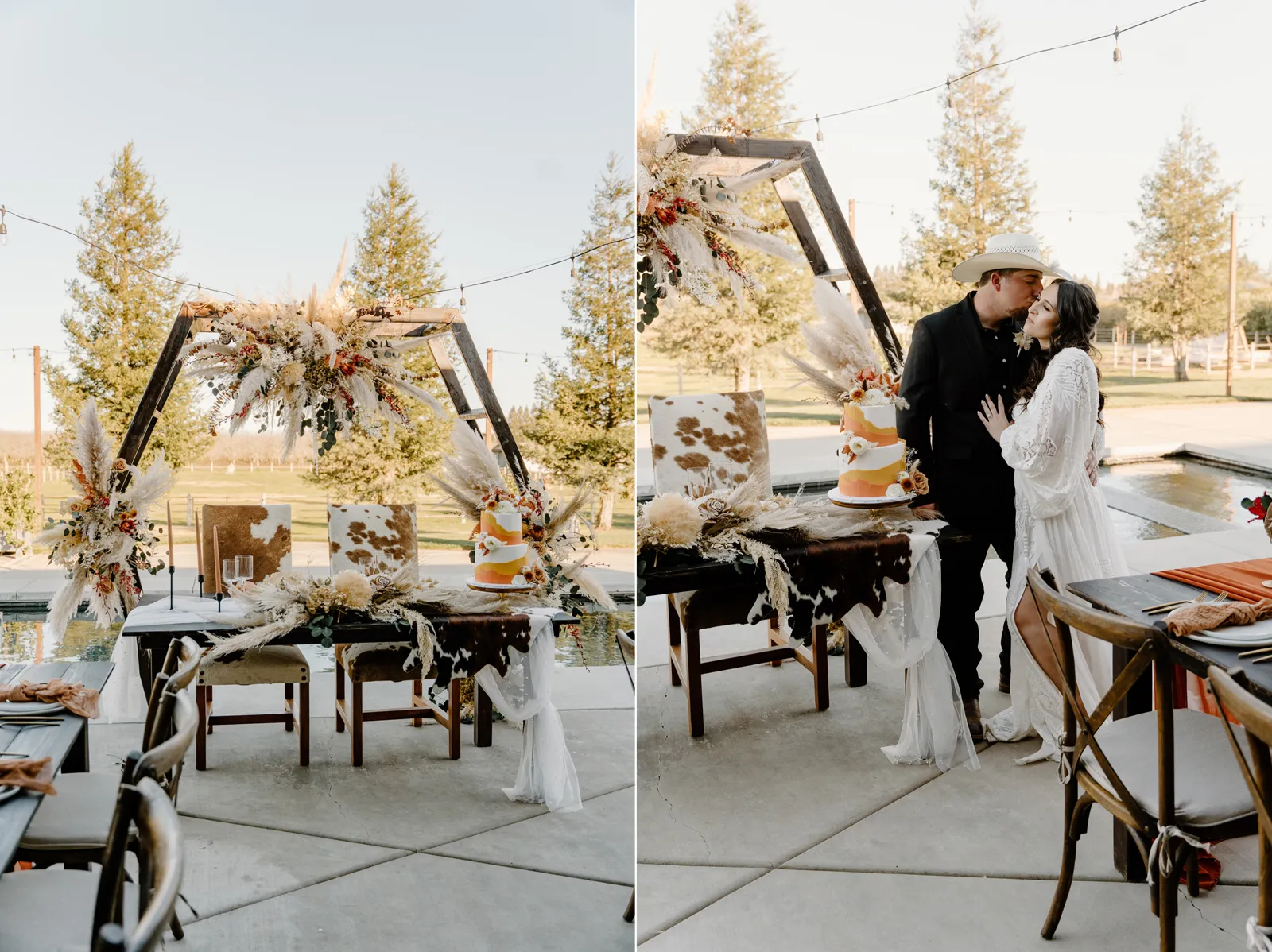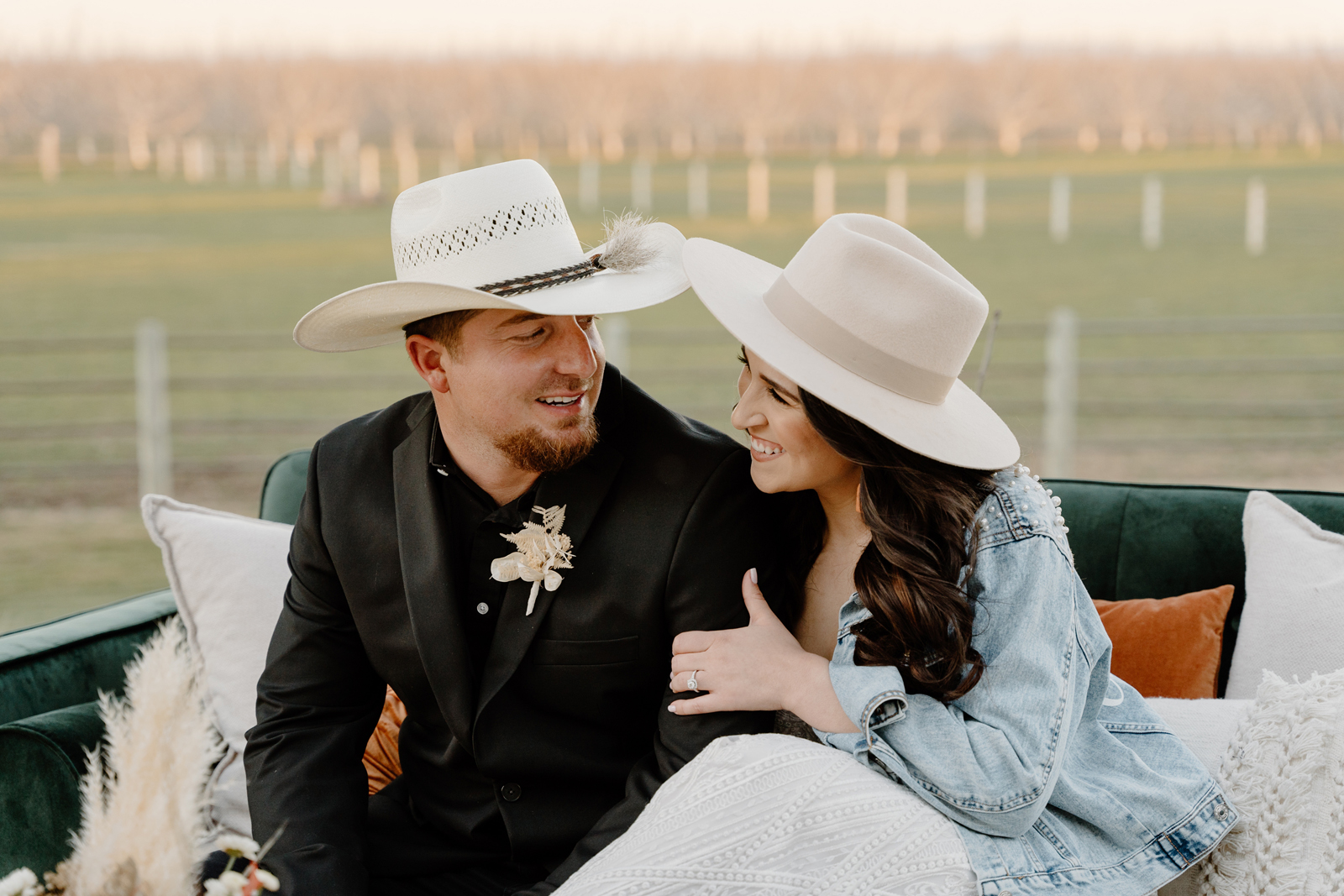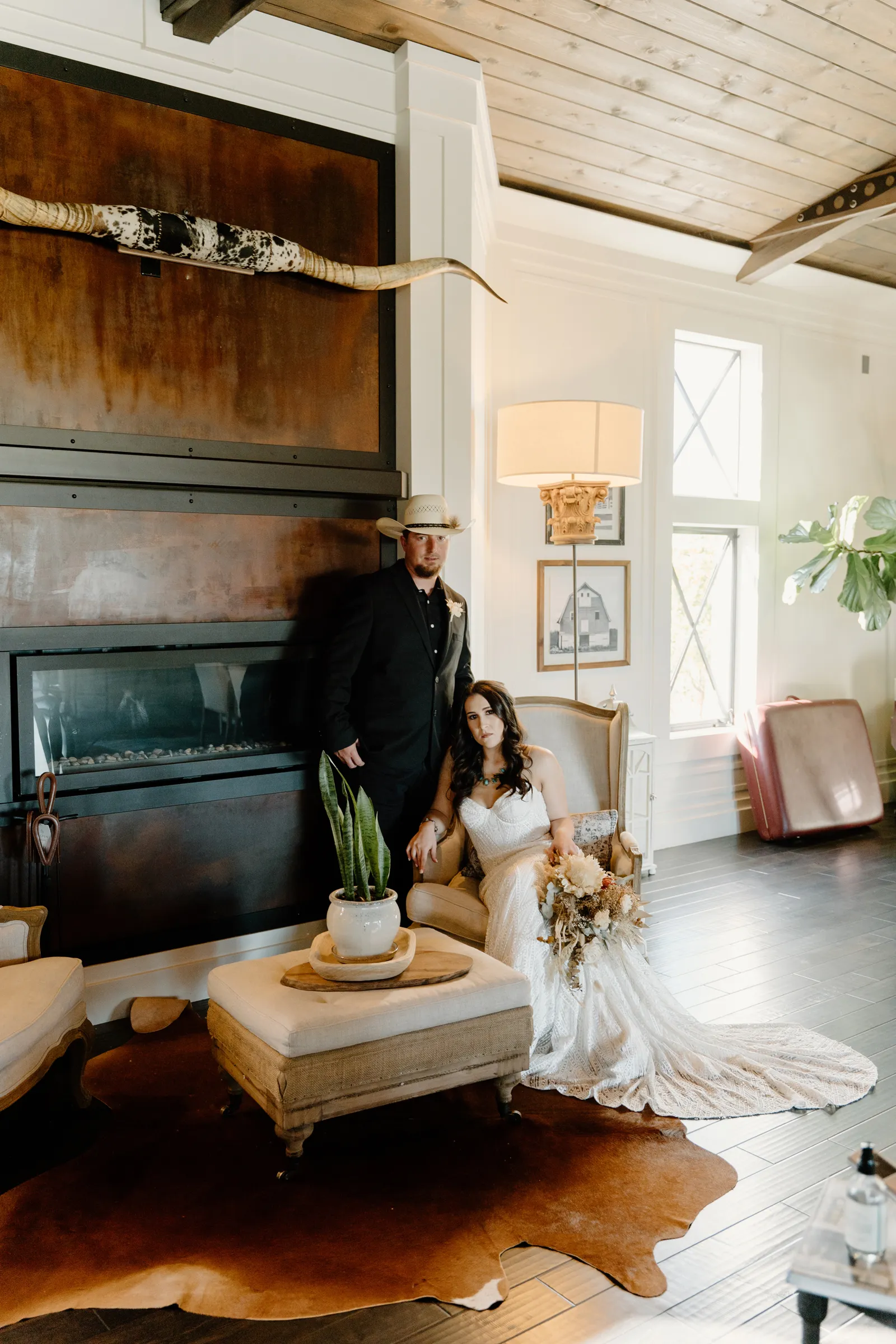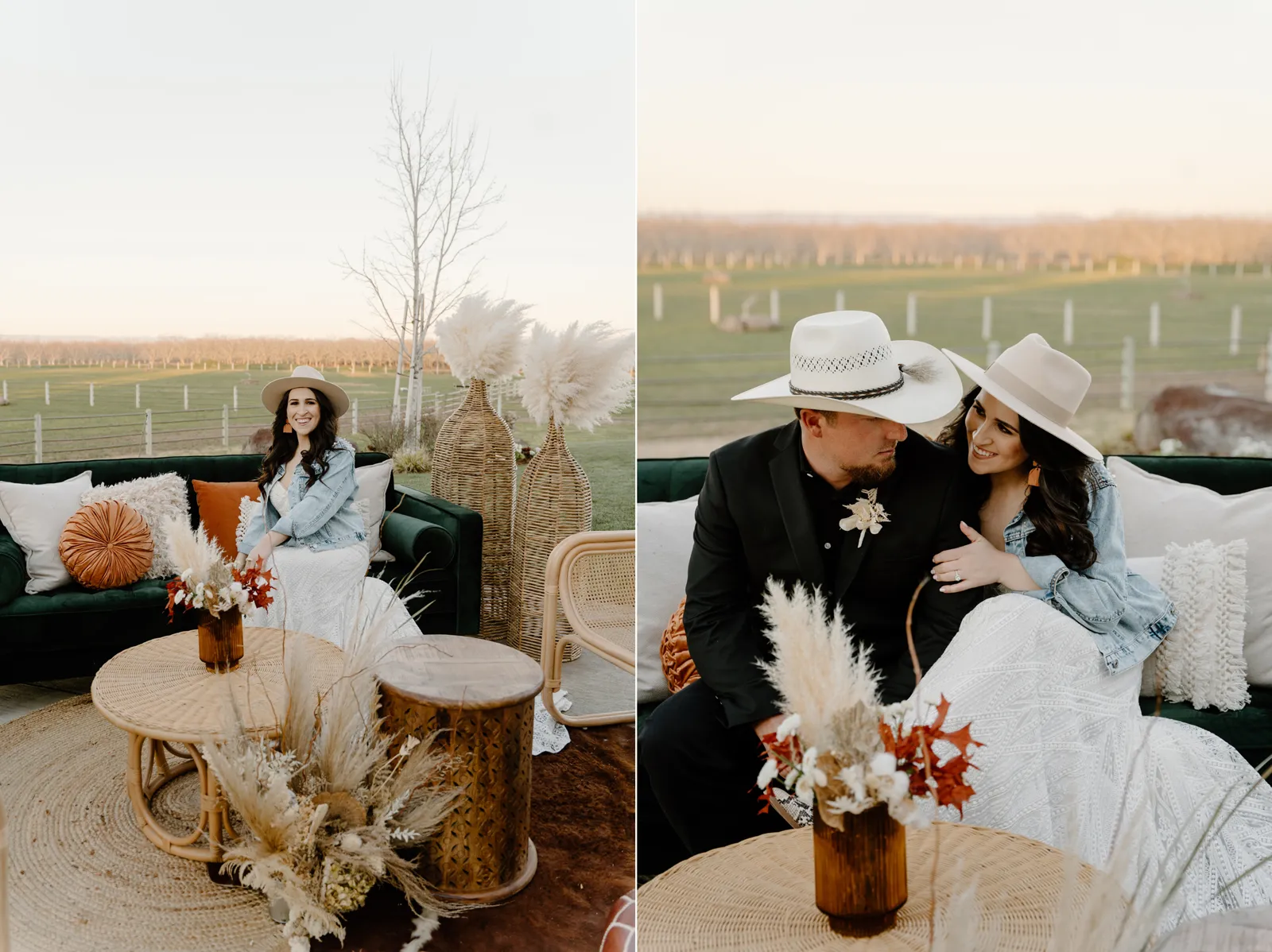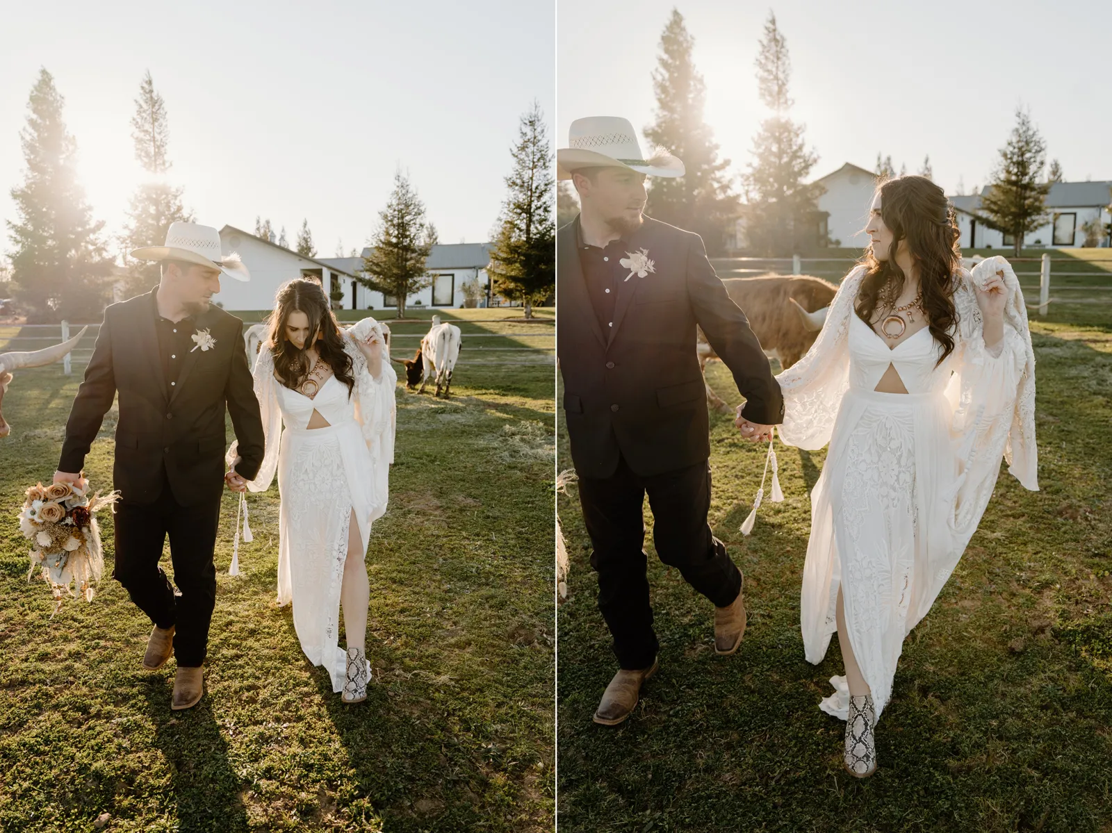 Is it wrong that we get giddy with excitement when we see weddings and styled shoots at The Ranch at Lone Oak Longhorns? Want to know why? With their modern farmhouse and barn like structures, the venue is the perfect backdrop for virtually any wedding theme (as you’ll see with this gorgeous submitted styled shoot), but also: They. Have. Cows. and not just any cows, they’re LONGHORNS. These gentle giants seem unfazed by the wedding couples they see, and sneak into the background of many photos, often to the delight of the wedding couple. And for this submitted styled shoot that we teased in the current issue of Real Weddings Magazine, it fuses boho touches with a modern western theme…enjoy dear Real Weddings Readers!