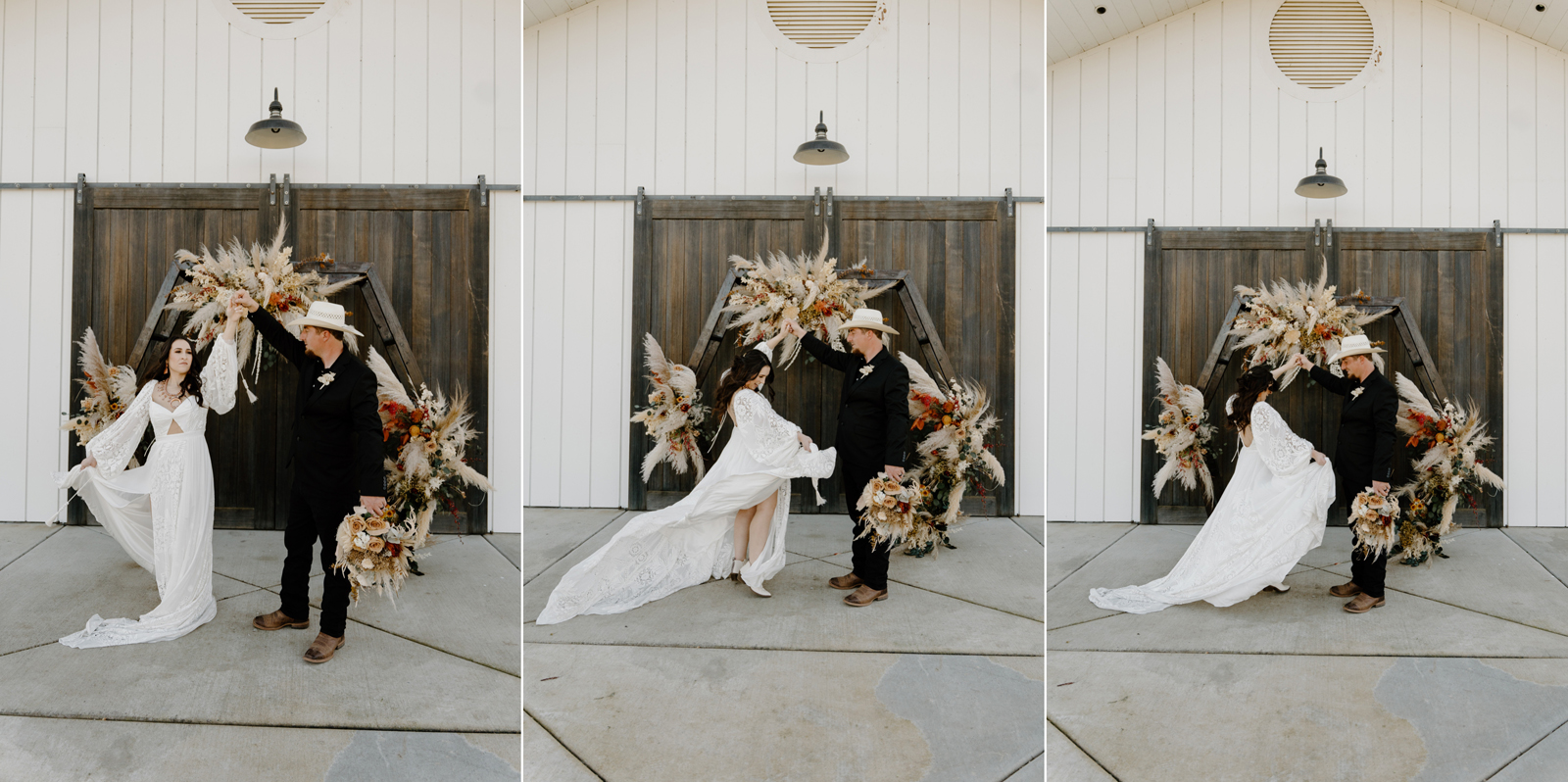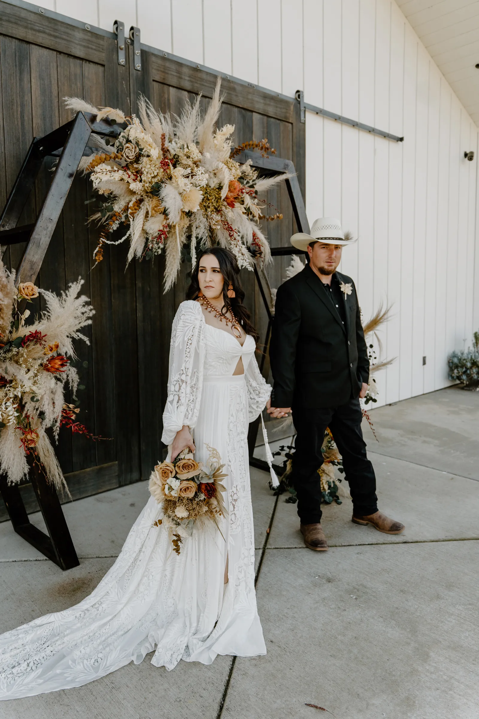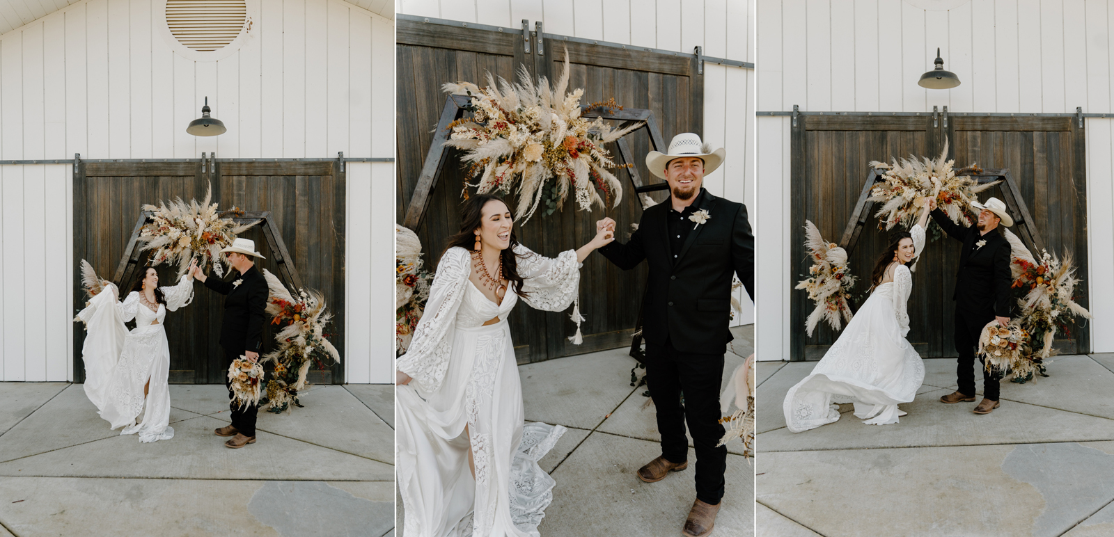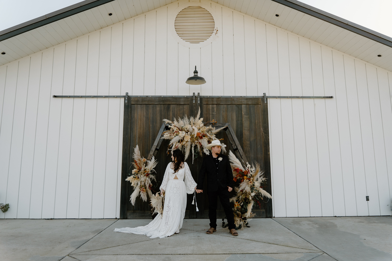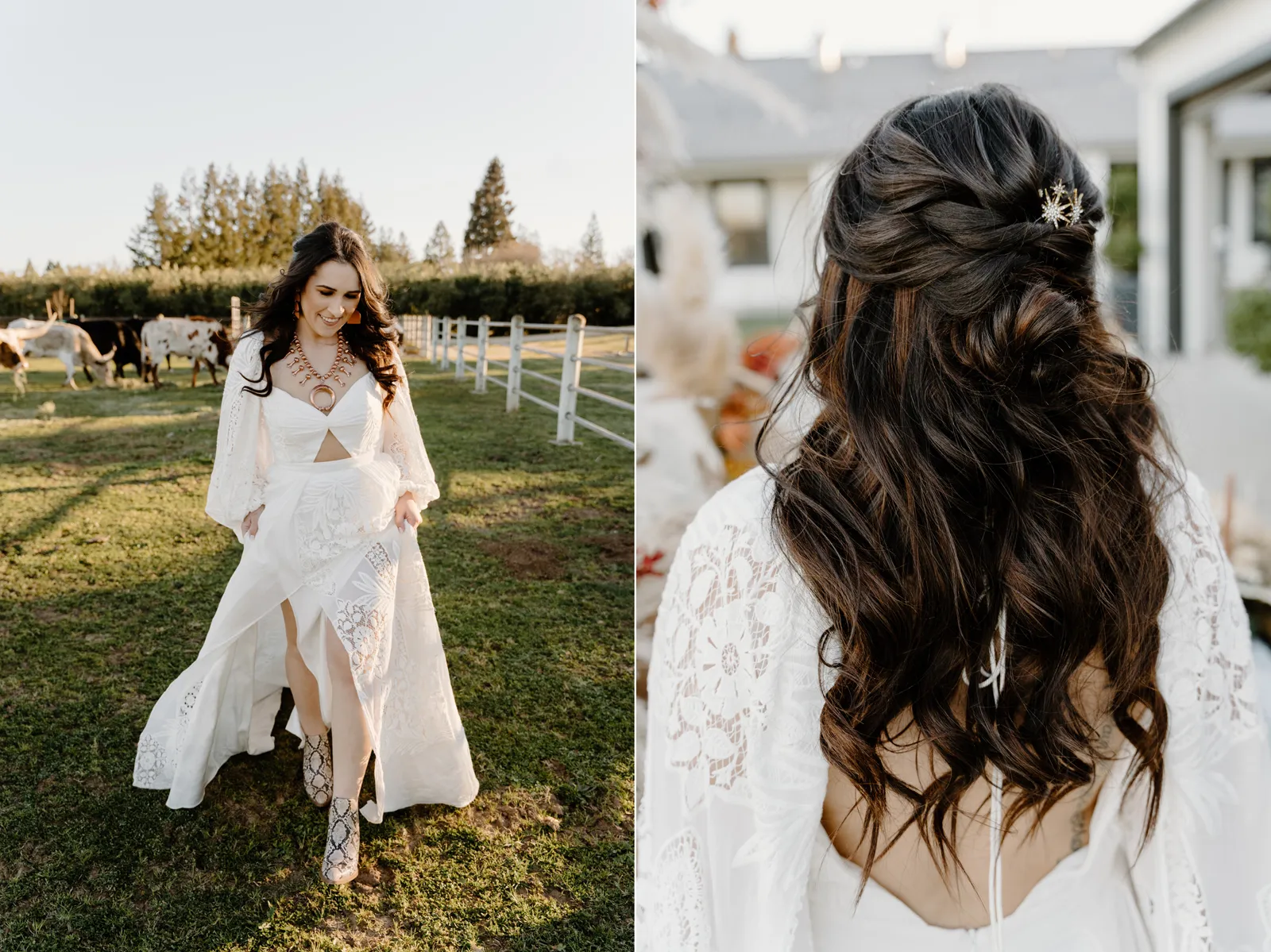 Is it wrong that we get giddy with excitement when we see weddings and styled shoots at The Ranch at Lone Oak Longhorns? Want to know why? With their modern farmhouse and barn like structures, the venue is the perfect backdrop for virtually any wedding theme (as you’ll see with this gorgeous submitted styled shoot), but also: They. Have. Cows. and not just any cows, they’re LONGHORNS. These gentle giants seem unfazed by the wedding couples they see, and sneak into the background of many photos, often to the delight of the wedding couple. And for this submitted styled shoot that we teased in the current issue of Real Weddings Magazine, it fuses boho touches with a modern western theme…enjoy dear Real Weddings Readers!
