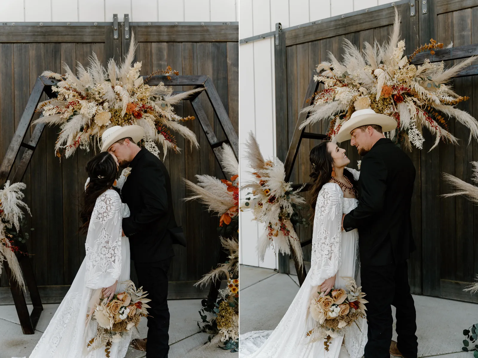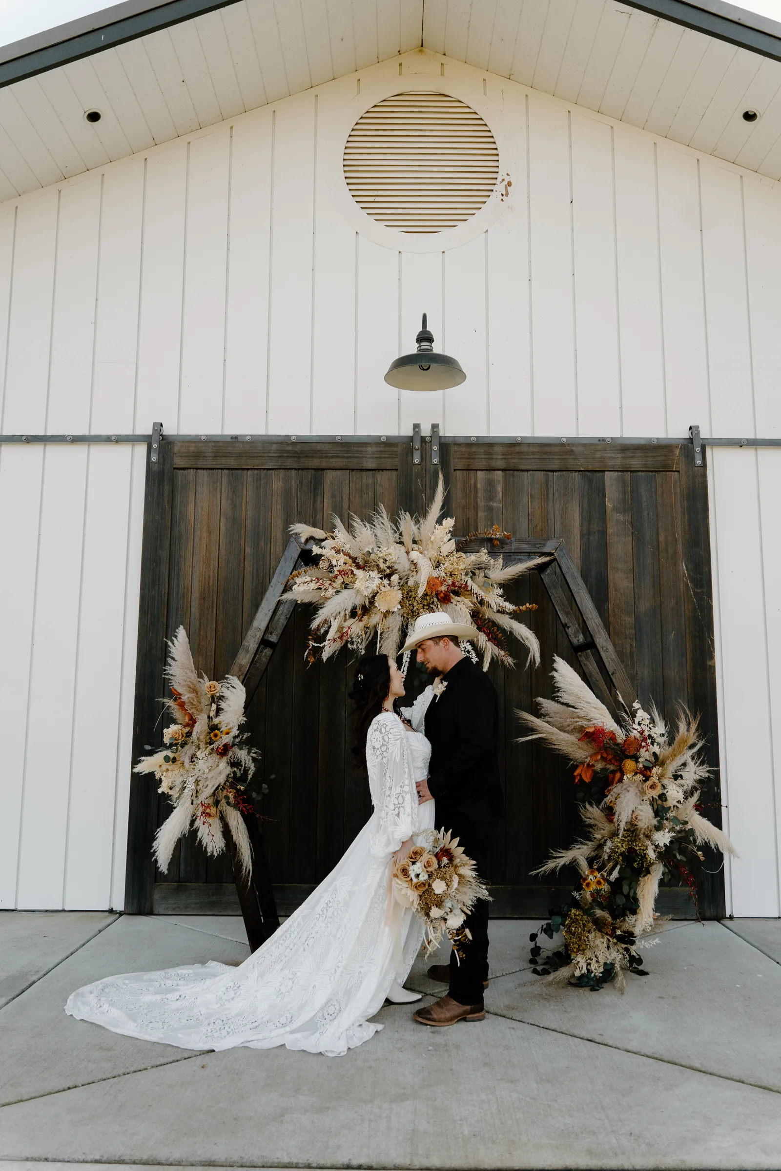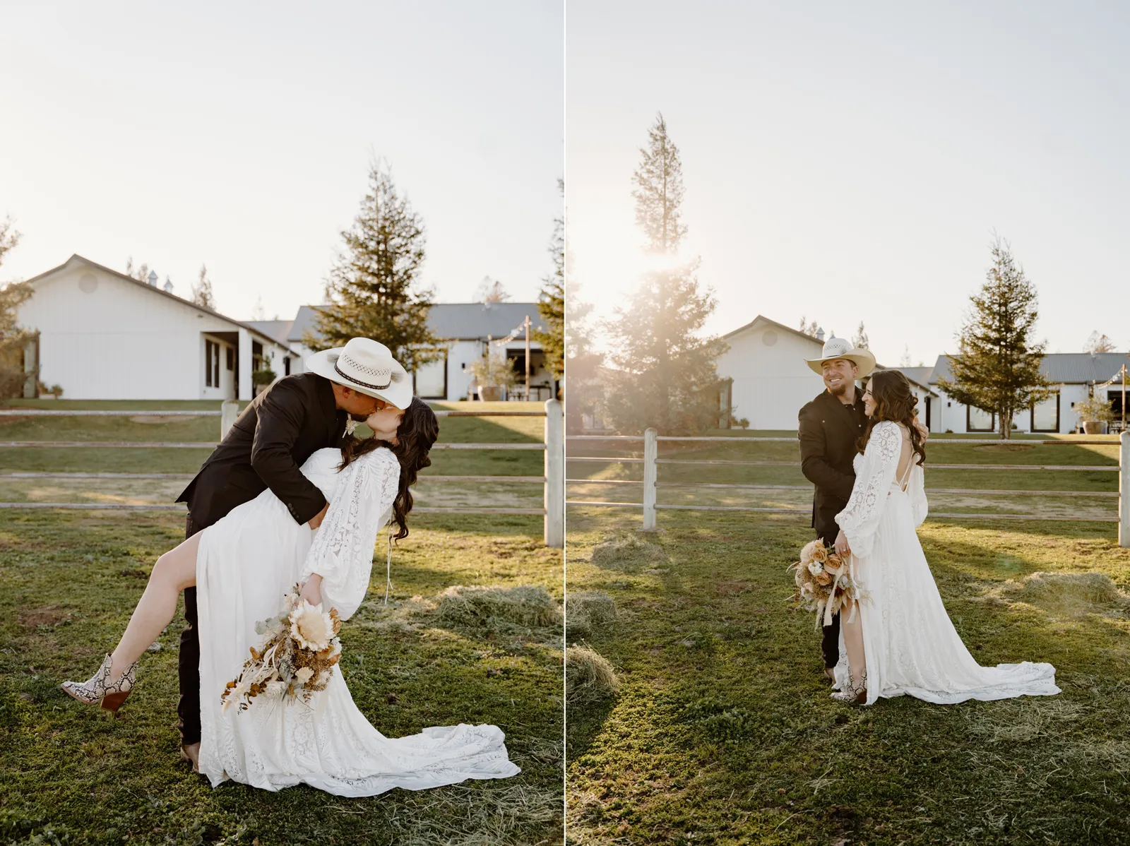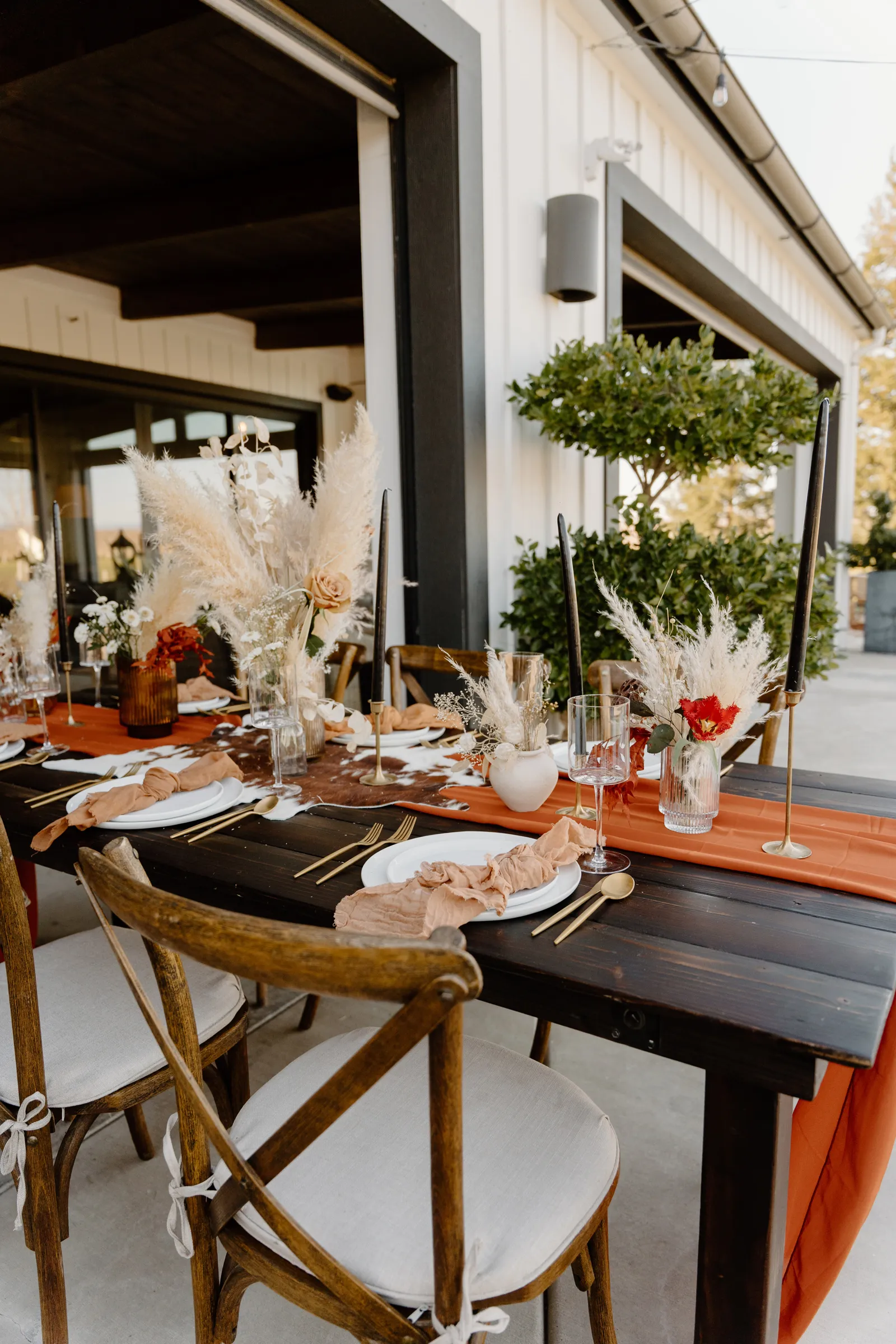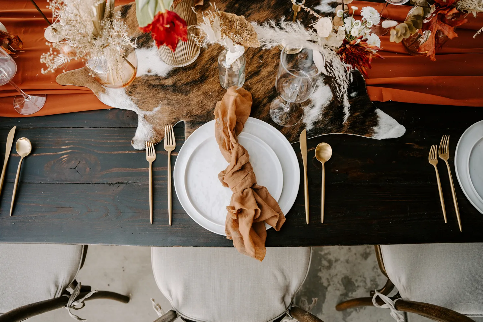Is it wrong that we get giddy with excitement when we see weddings and styled shoots at The Ranch at Lone Oak Longhorns? Want to know why? With their modern farmhouse and barn like structures, the venue is the perfect backdrop for virtually any wedding theme (as you’ll see with this gorgeous submitted styled shoot), but also: They. Have. Cows. and not just any cows, they’re LONGHORNS. These gentle giants seem unfazed by the wedding couples they see, and sneak into the background of many photos, often to the delight of the wedding couple. And for this submitted styled shoot that we teased in the current issue of Real Weddings Magazine, it fuses boho touches with a modern western theme…enjoy dear Real Weddings Readers!