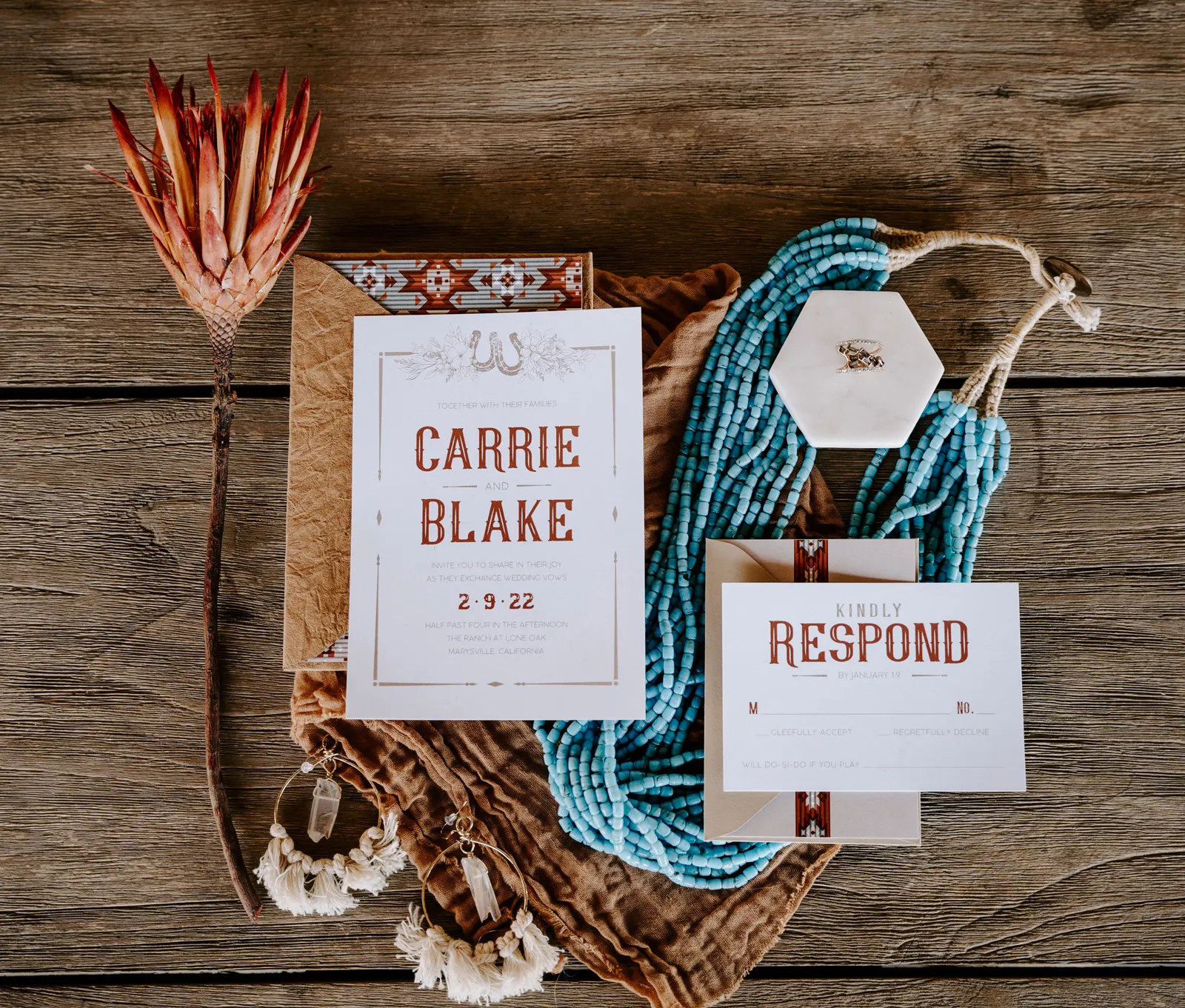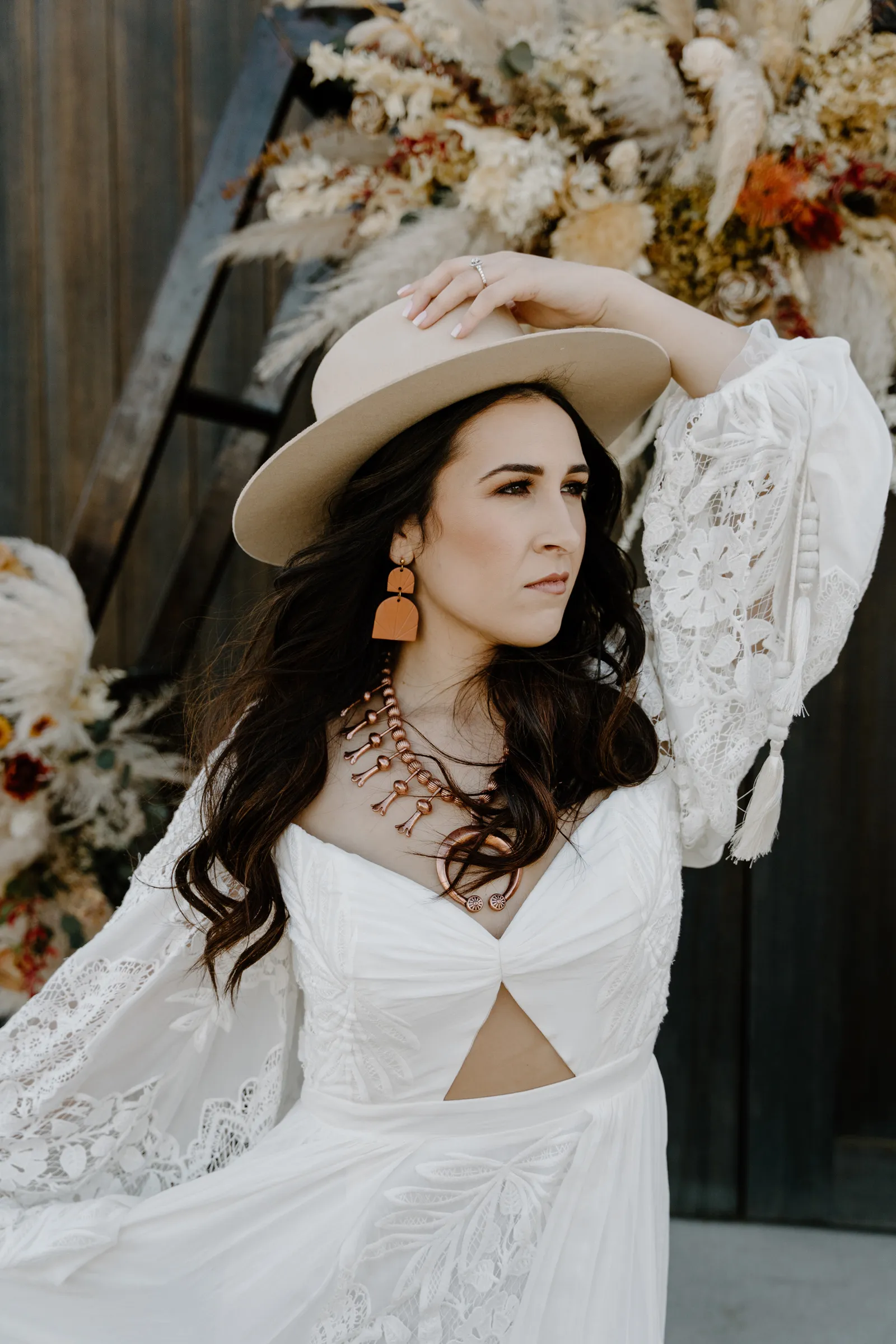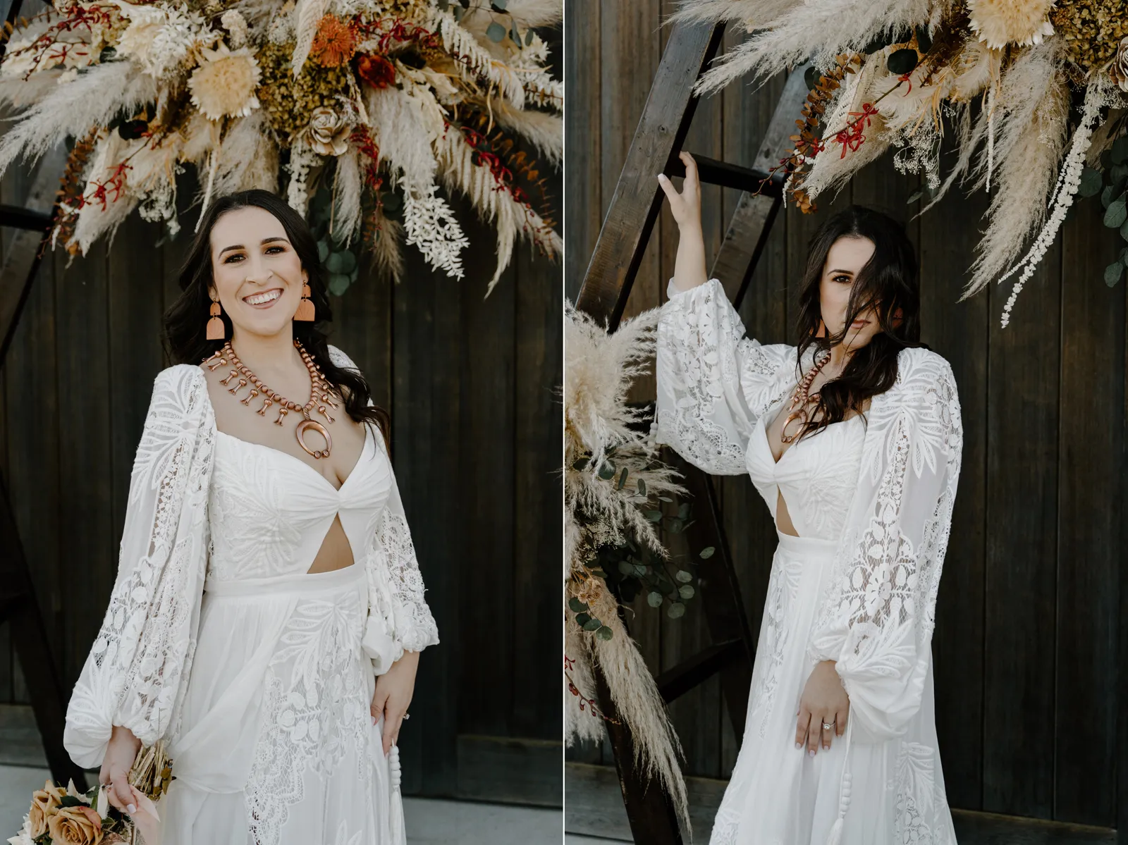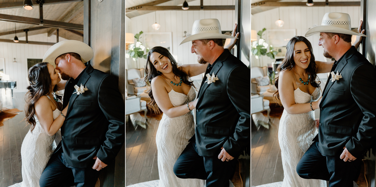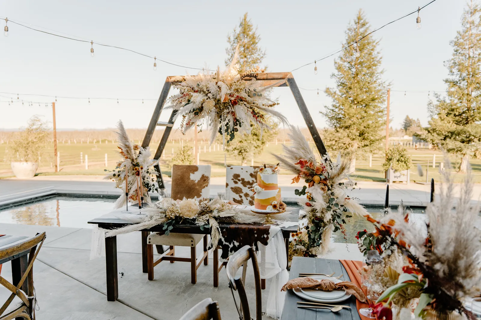 Is it wrong that we get giddy with excitement when we see weddings and styled shoots at The Ranch at Lone Oak Longhorns? Want to know why? With their modern farmhouse and barn like structures, the venue is the perfect backdrop for virtually any wedding theme (as you’ll see with this gorgeous submitted styled shoot), but also: They. Have. Cows. and not just any cows, they’re LONGHORNS. These gentle giants seem unfazed by the wedding couples they see, and sneak into the background of many photos, often to the delight of the wedding couple. And for this submitted styled shoot that we teased in the current issue of Real Weddings Magazine, it fuses boho touches with a modern western theme…enjoy dear Real Weddings Readers!