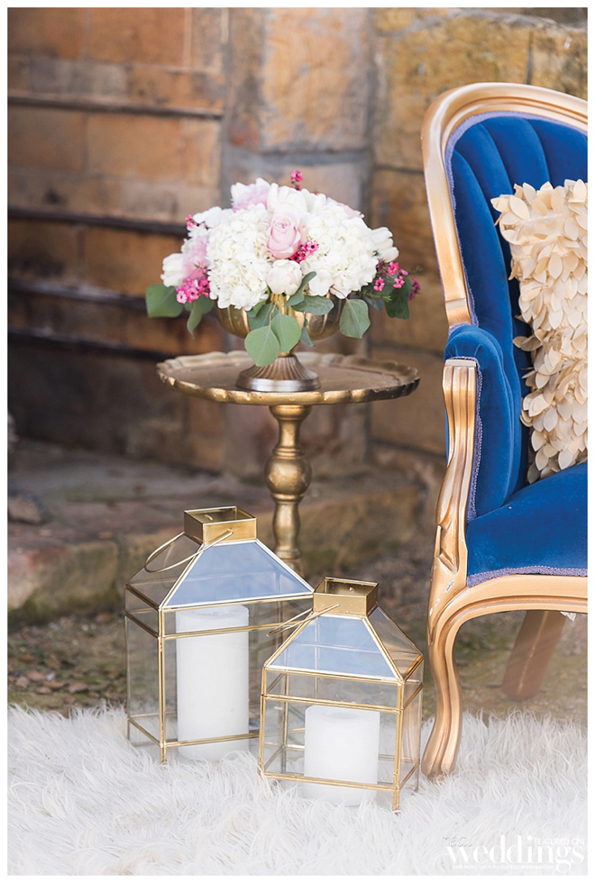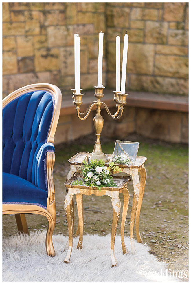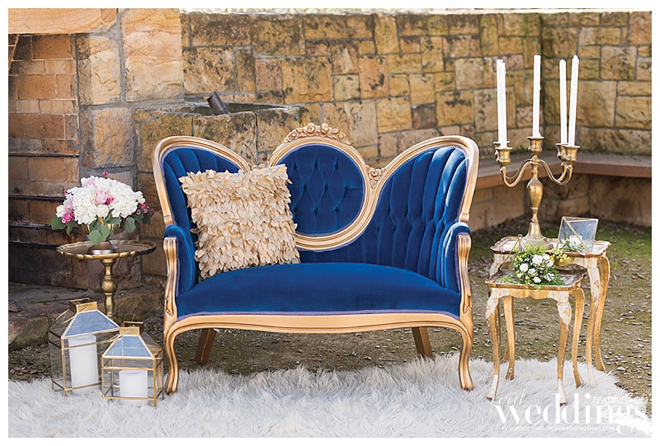 Wedding rentals create a welcoming feeling for guests and, with the variety of rentals available, can help personalize a wedding and even enhance a venue. We fell in love with the sets we used during Blushing Beauties and wanted to acknowledge the beauty and uniqueness they brought to our shoot – especially that blue, velvet sofa!